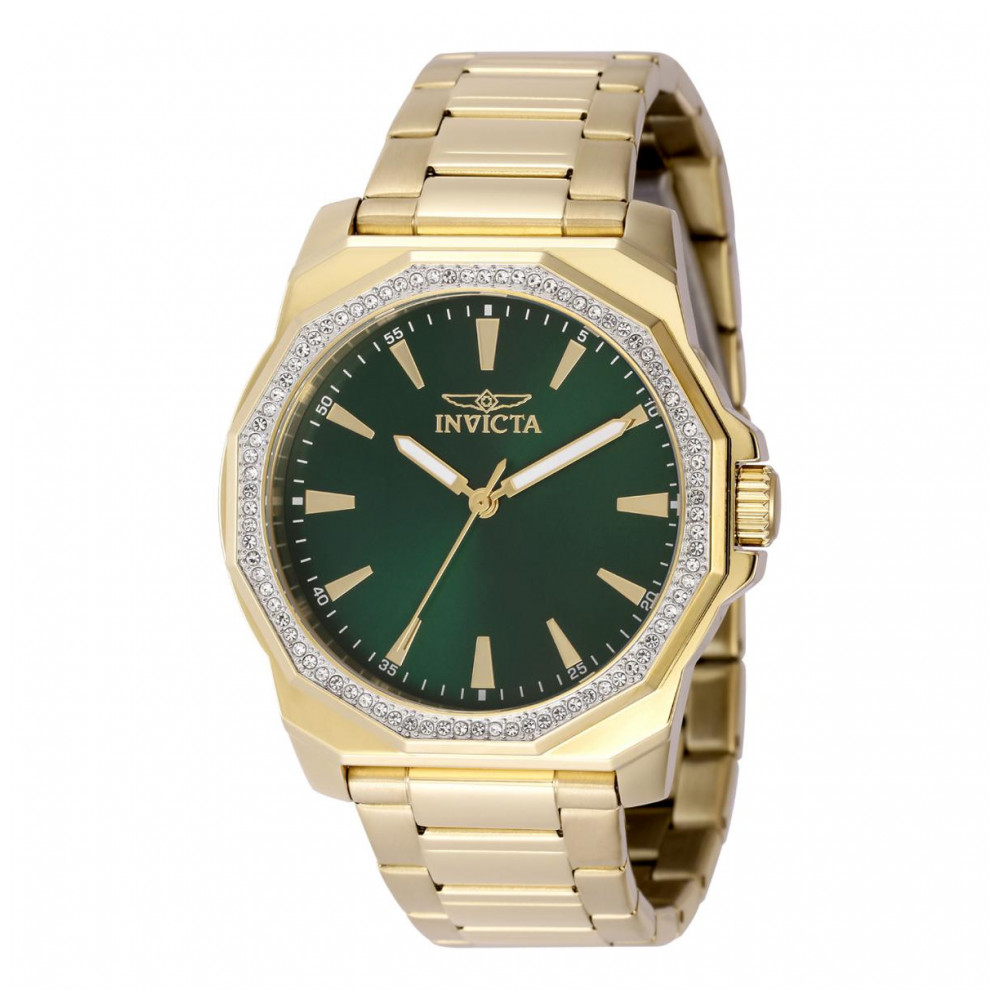 Este impressionante relógio Invicta Speedway apresenta um movimento preciso de quartzo e um elegante estojo dourado. Seu mostrador verde em latão é protegido por um cristal mineral altamente resistente. Este relógio é complementado por uma resistente pulseira dourada e oferece resistência à água de 30 metros. Transmitindo o tempo com sofisticação máxima, levando em consideração as necessidades do homem ativo, a coleção Invicta Speedway se adapta facilmente a qualquer jornada. Um ativo em qualquer atividade, permita que o Speedway se integre à sua vida esportiva e profissional. Desde sua fundação em La ChauxdeFonds, Suíça, em 1837, o compromisso com a excelência e a inovação tem sido o cerne de cada coleção criada pela Invicta. Aqui na Invicta Stores, oferecemos o catálogo mais extenso de relógios desta magnífica marca com os preços mais baixos online. Com a gente, você encontrará um atendimento ao cliente superior, uma garantia de 3 anos e um compromisso de longa data em oferecer o melhor valor disponível. Em algumas instâncias, as cores nas imagens podem variar ligeiramente do produto real.