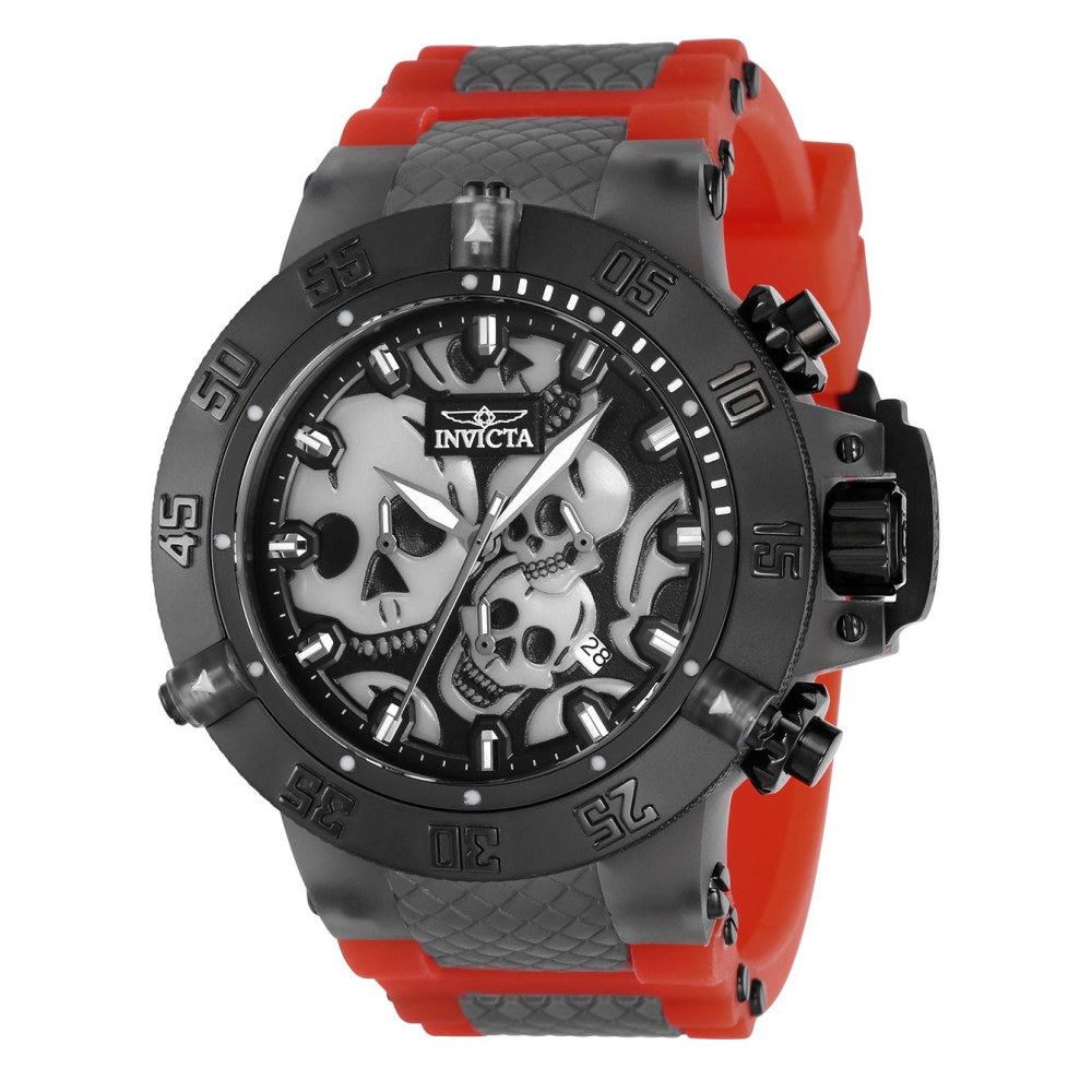 Relógio Masculino Invicta Subaqua Skull 50mm Preto Vermelho Cinza Escuro ZG37326