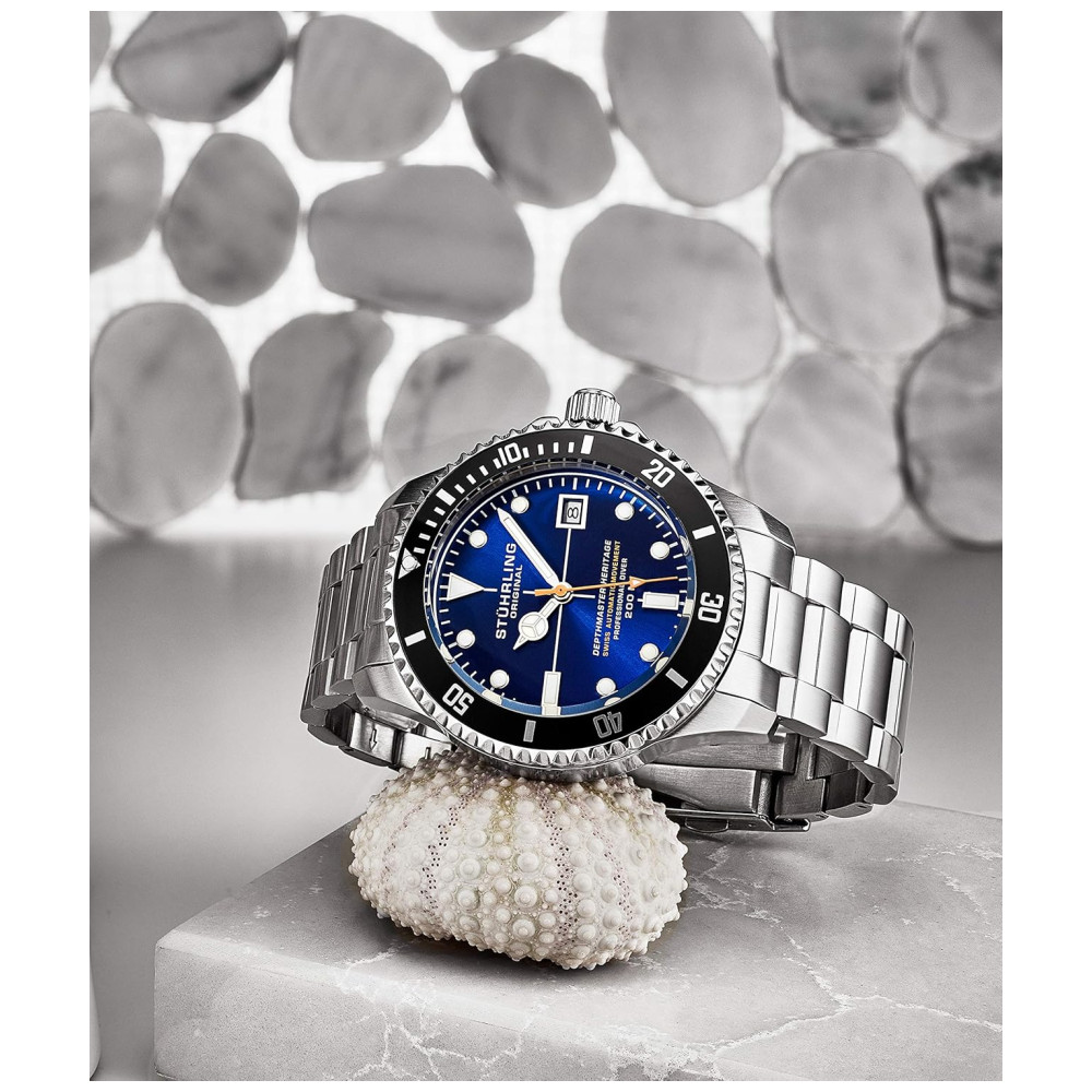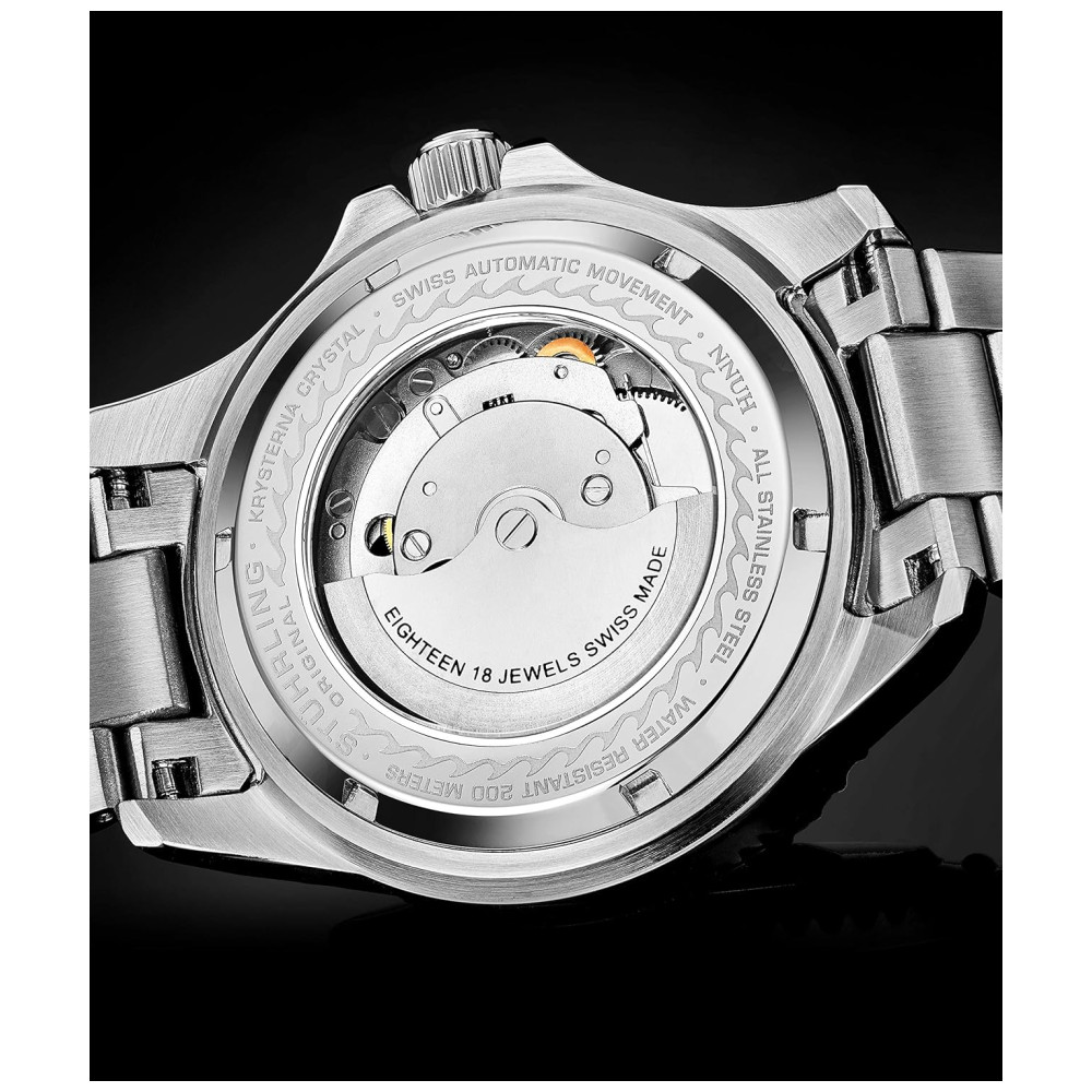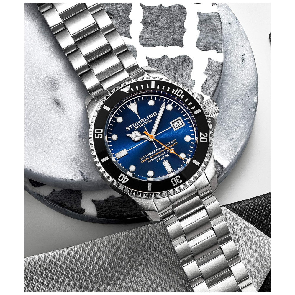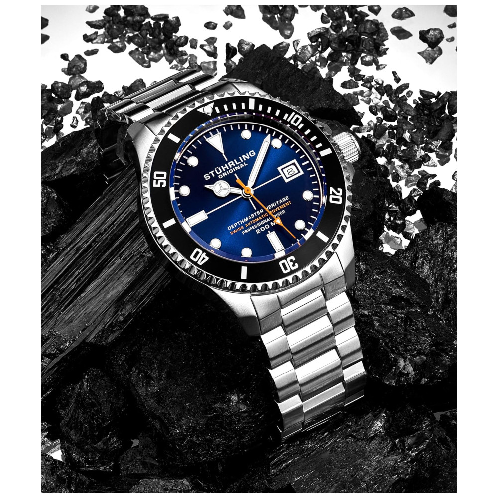 Relógio Masculino Mergulho Profissional Automático DEPTHMASTER Prova D 200m STUHRLING 883H.03 Prateado
