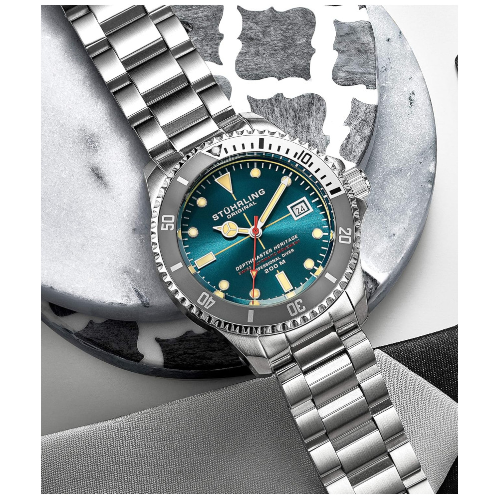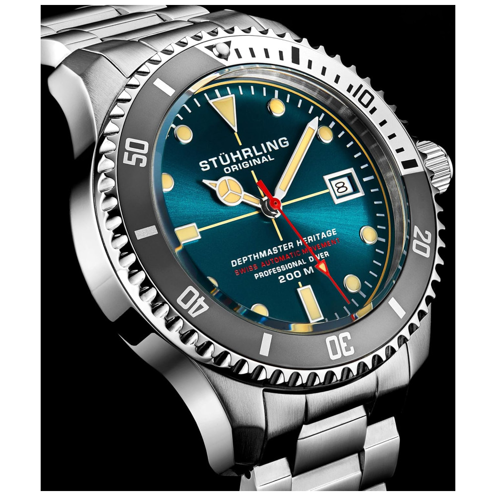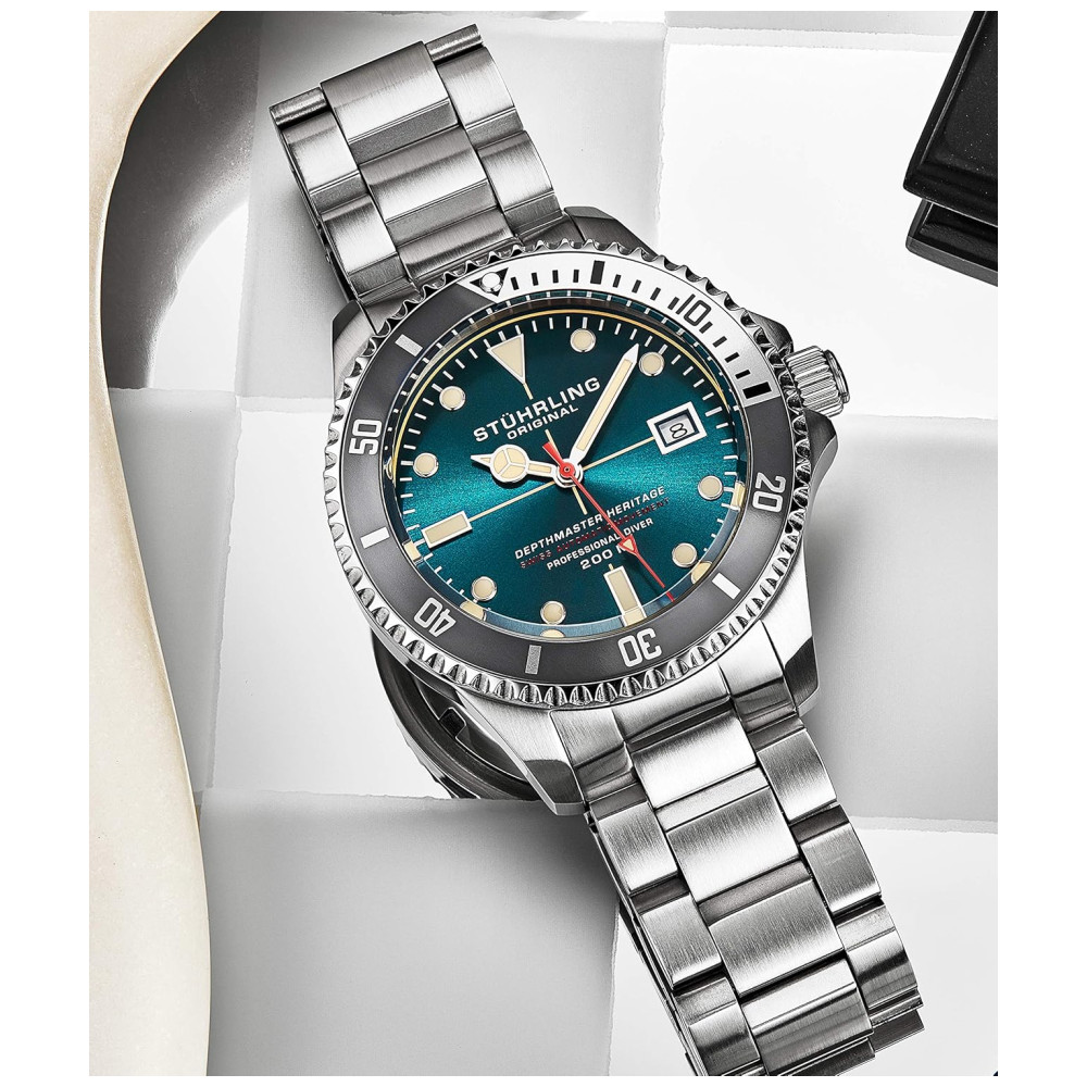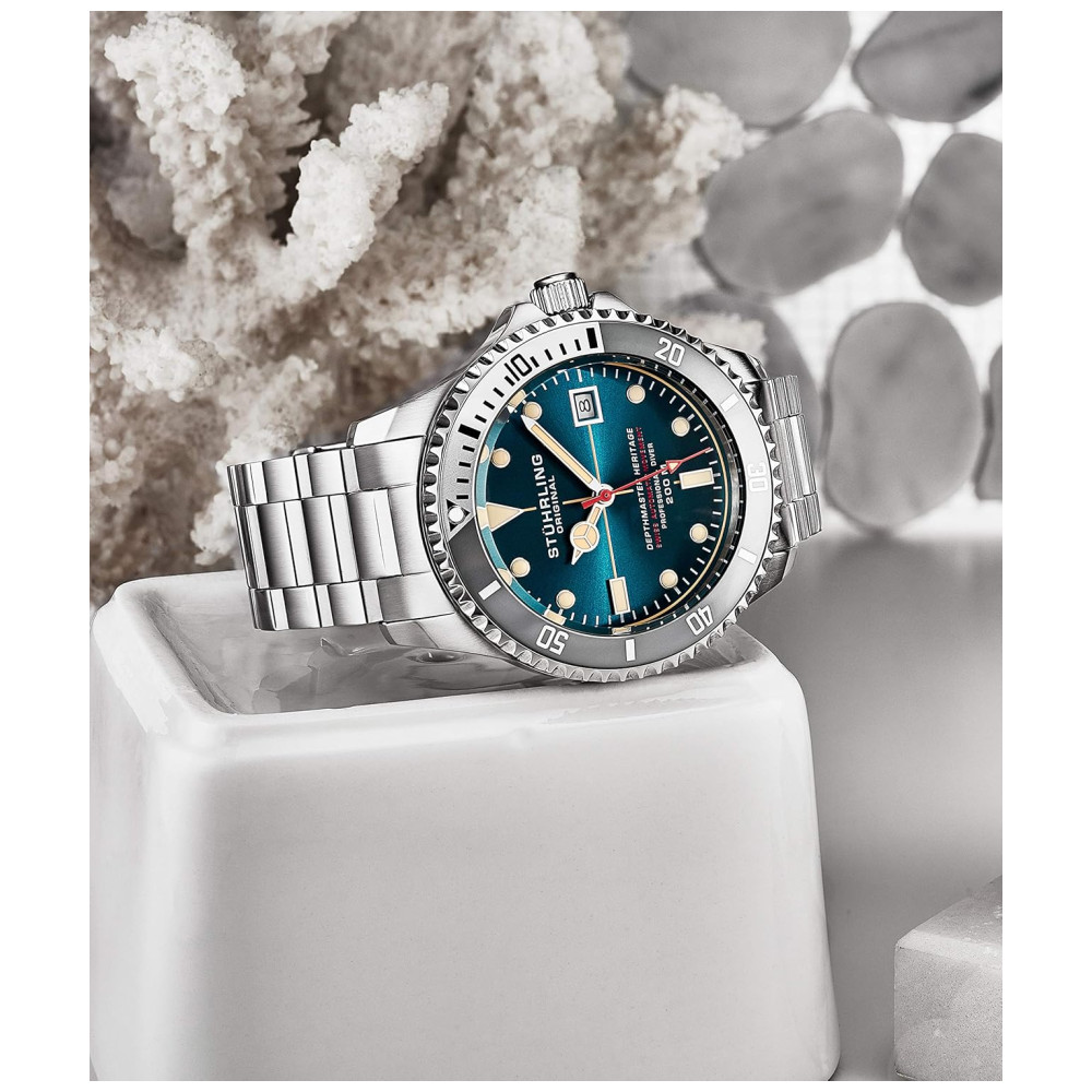 Relógio Masculino Mergulho Profissional AutomáticoDEPTHMASTER Prova D 200m 3 Cores STUHRLING 883H.04 Prateado