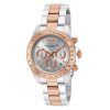 Este relógio Invicta da coleção Pro Diver possui um movimento de quartzo e possui uma caixa de aço resistente. Em sua face, você pode encontrar um mostrador de metal preto coberto por um durável Flame Fusion Crystal. Este estilo é finalizado por uma pulseira confiável de aço inoxidável prateado e dourado e oferece resistência à água de 100 m.