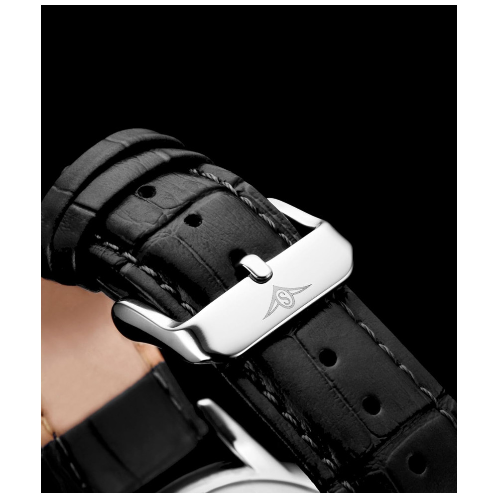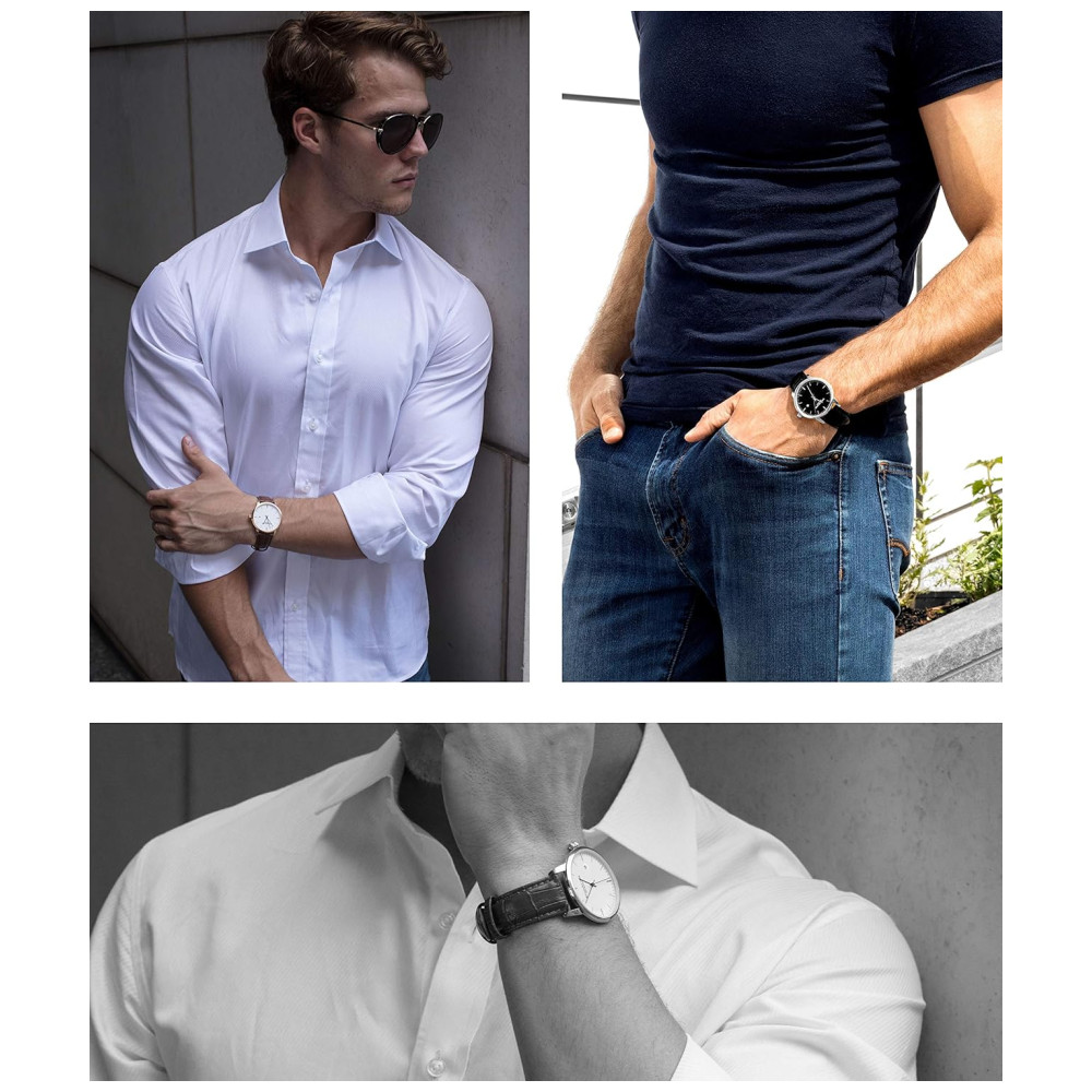 Design minimalista traz uma elegância elegante a qualquer pulso Perfil ultrafino tem peso mínimo e volume combinado com pulseira de couro fornece máximo conforto Janela de data de ajuste rápido para fácil funcionalidade, mantendo um mostrador de relógio organizado Pares de estilo expressivo e versátil bem com trajes casuais e profissionais, tornando o um relógio para todas as ocasiões.