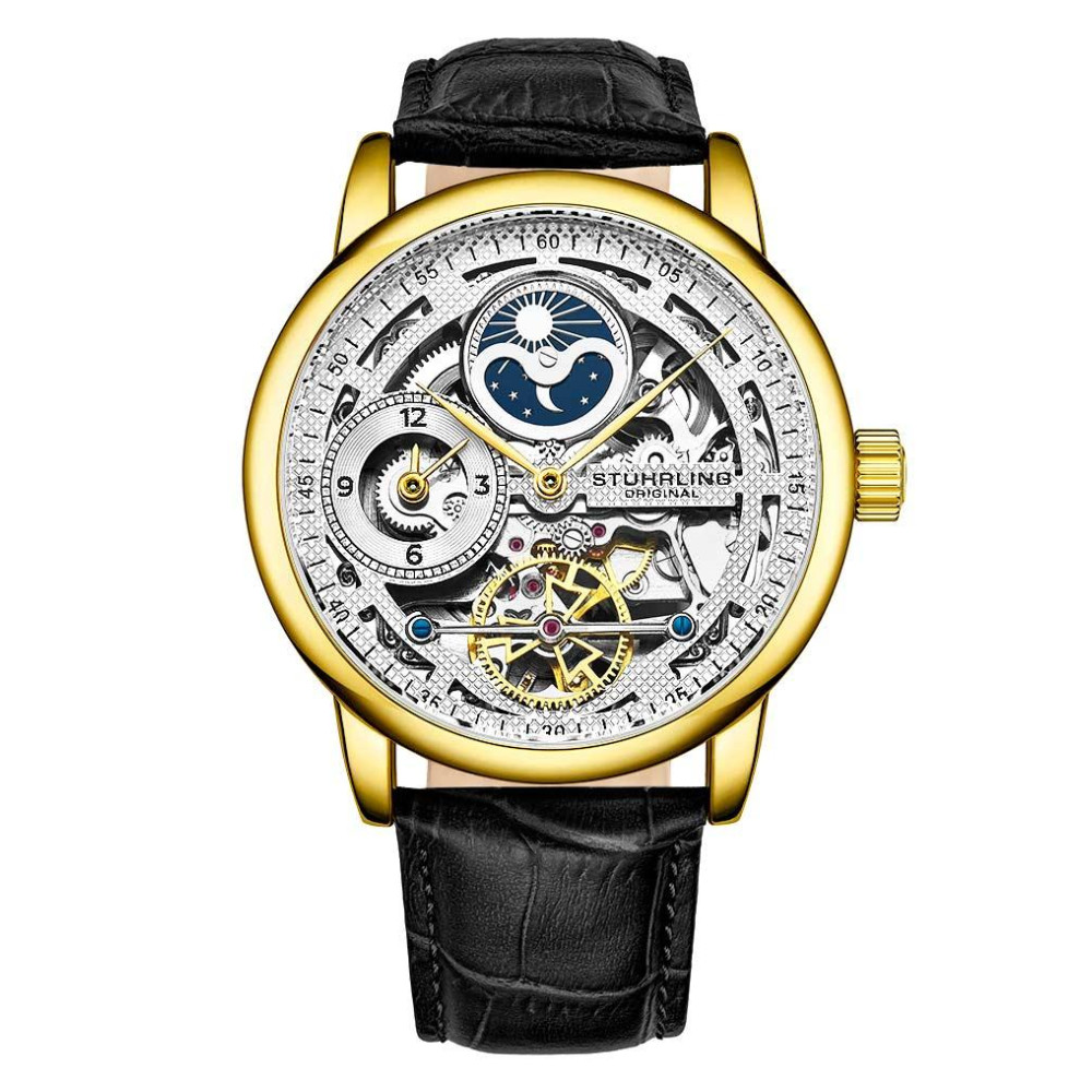 Relógio Masculino Stuhrling Esqueleto 3917 Automático 43mm Dourado