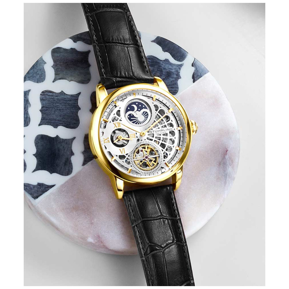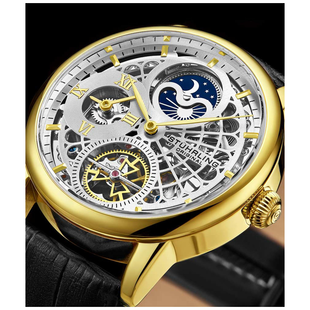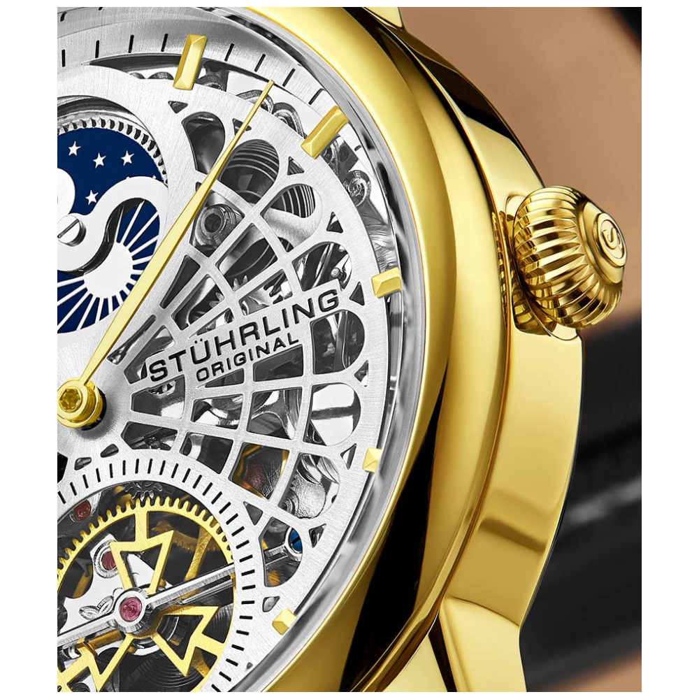 Relógio Masculino Stuhrling Esqueleto 3926 Automático 43mm Dourado
