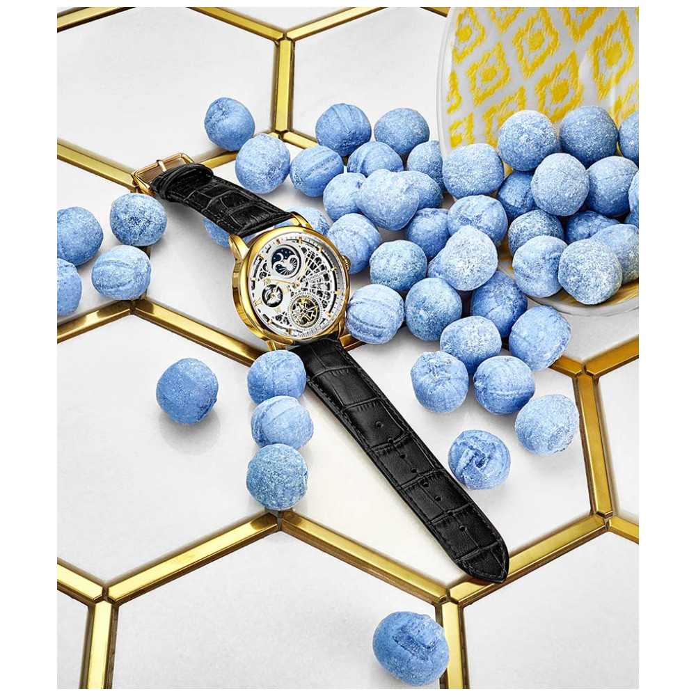 Projetado para impressionar sem impor, o Legacy 3926 coloca um indicador AM, PM e um submostrador de segundo fuso horário em seu deslumbrante mostrador guilloché.