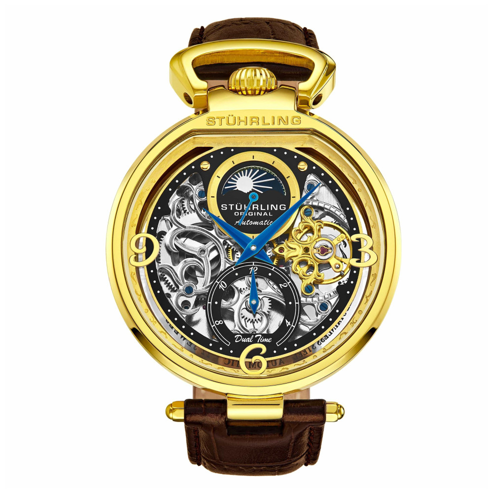 Relógio Masculino Stuhrling Modena 3954 Automático 46mm Marrom e Dourado