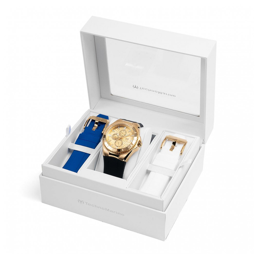 Relógio Masculino TechnoMarine Cruise California 45mm Preto Branco Azul com Pulseira Intercambiável TM124018