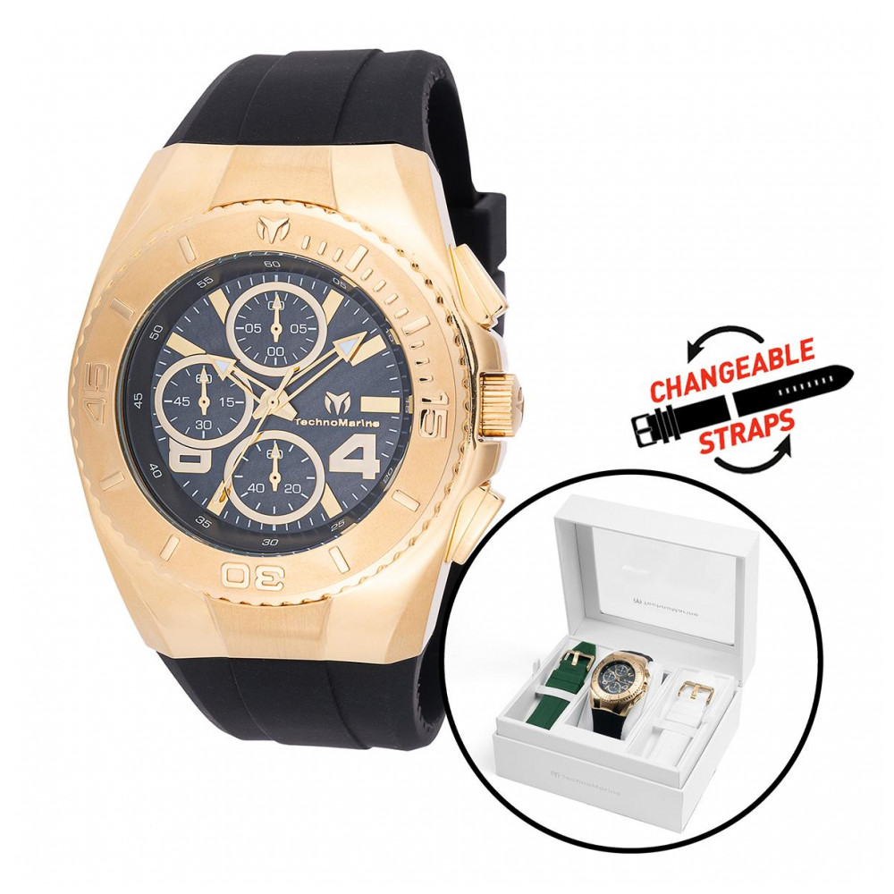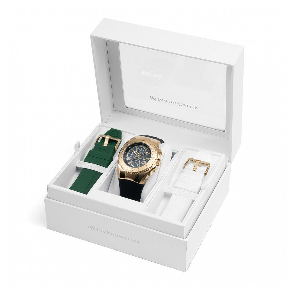 Relógio Masculino TechnoMarine Cruise Original com Mostrador de Madrepérola 43mm Preto Branco Verde e Pulseira Intercambiável TM124030