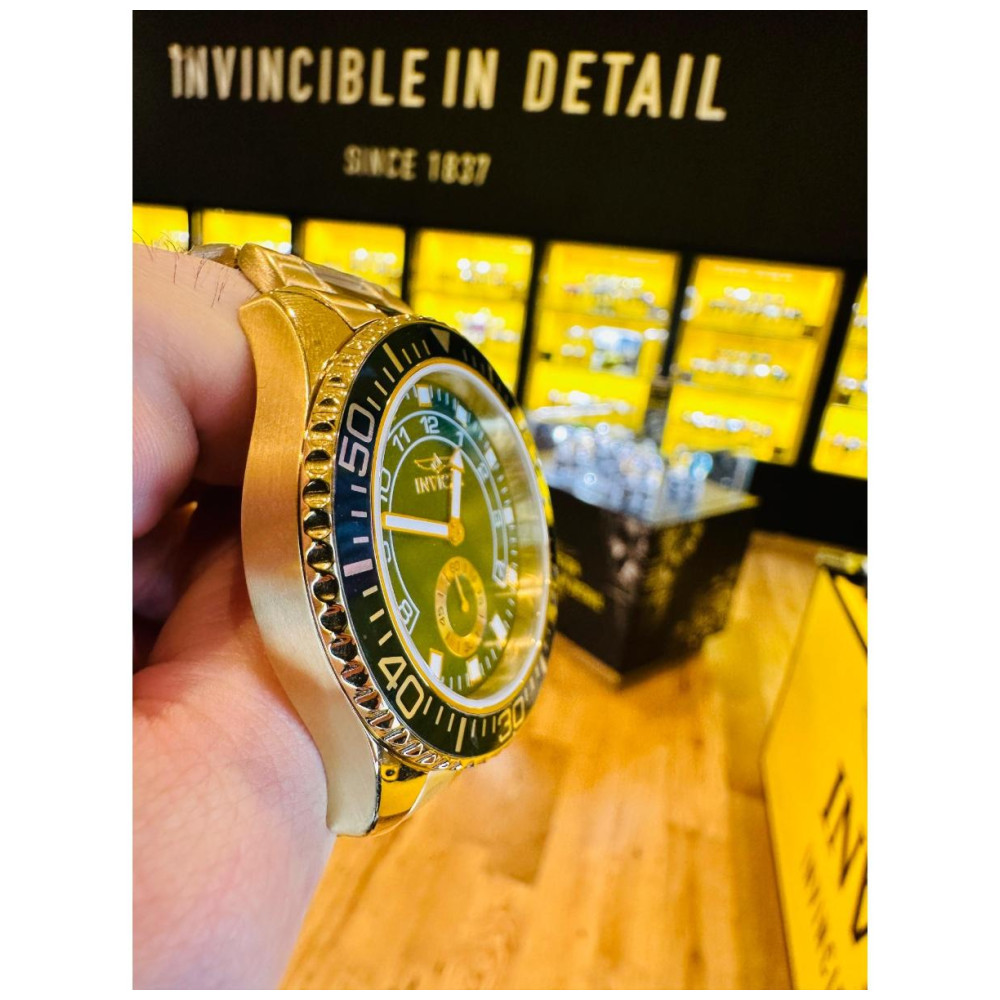 Este impressionante relógio Invicta Pro apresenta um movimento preciso e uma caixa dourada