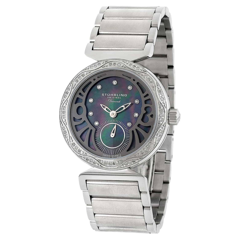 Relógio Soiree Elite 504B 34mm com mostrador preto e pulseira de aço inox prateada – Stuhrling.
