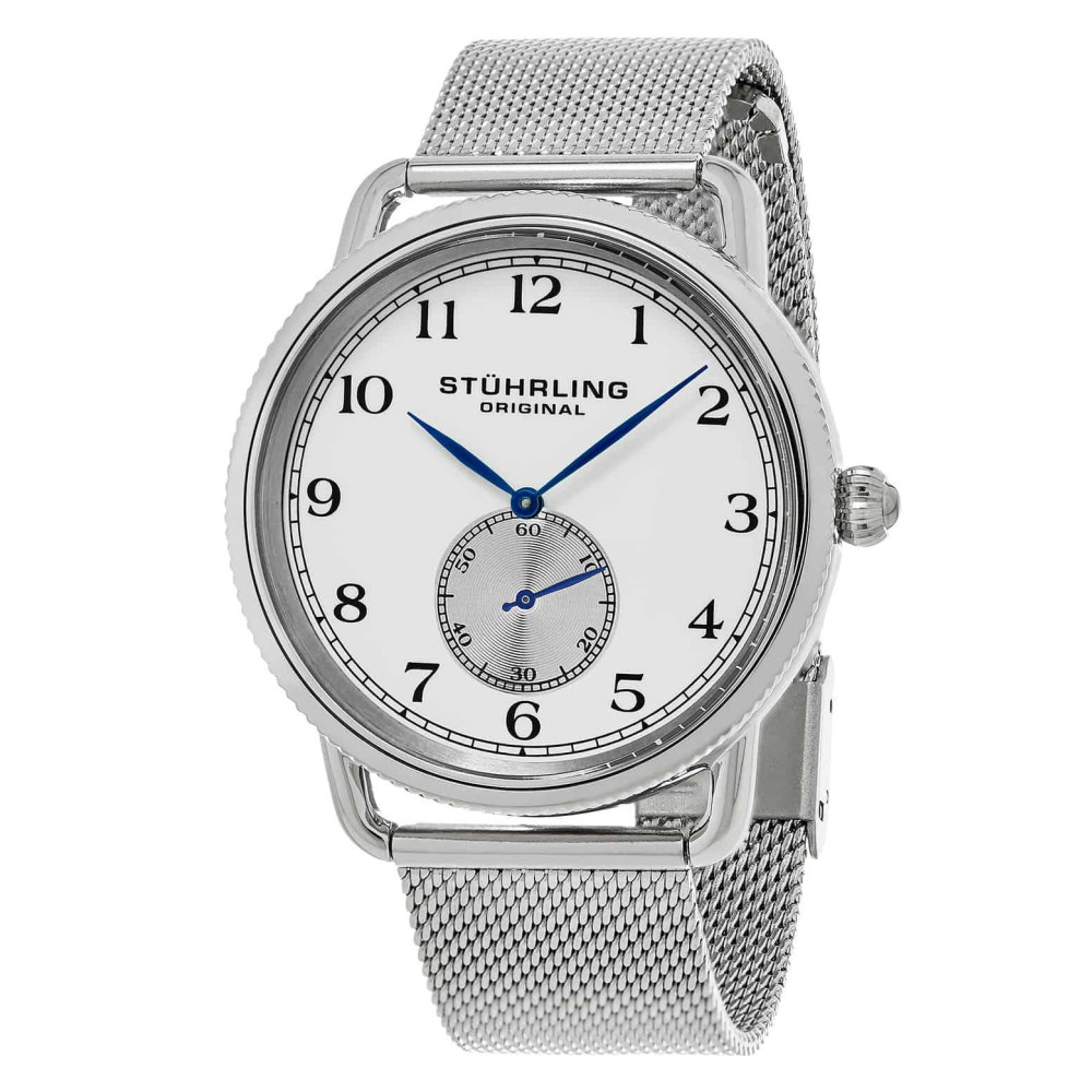 Relogio Stuhrling Classique 207M 40mm Mostrador Branco e Pulseira de Aco Inoxidavel Prateada