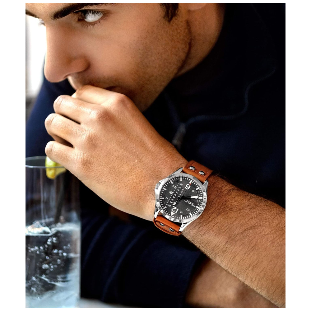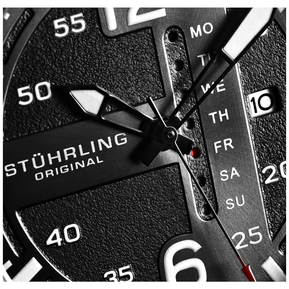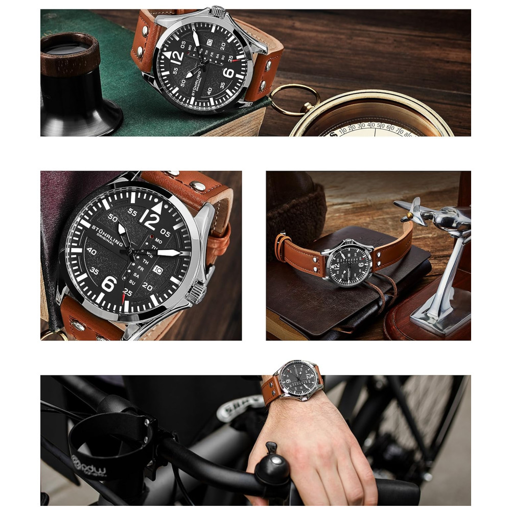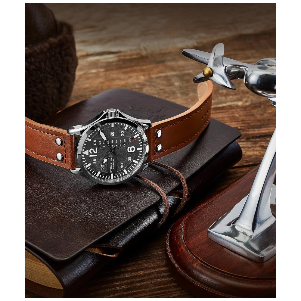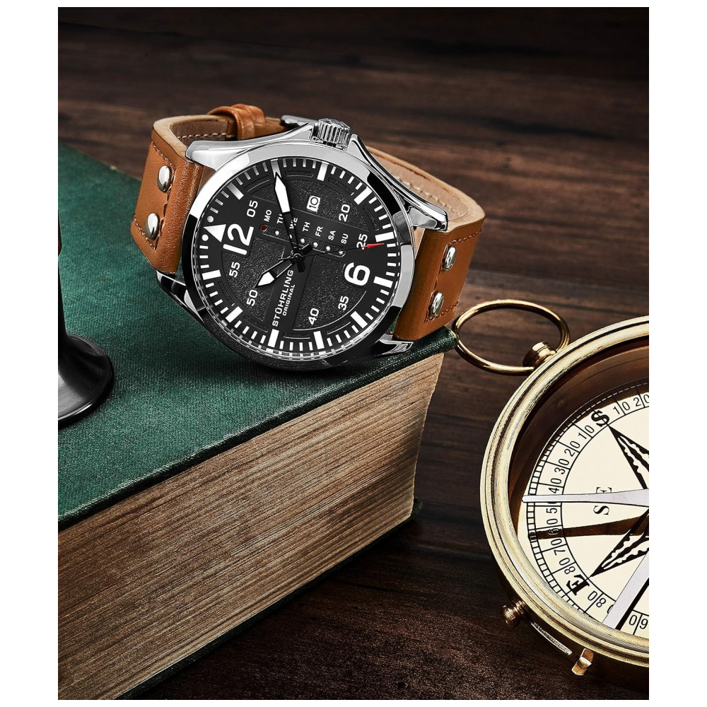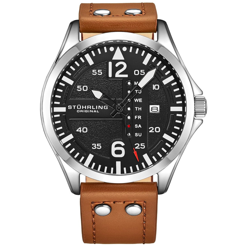 Relogio Stuhrling Homem. Couro Aviador Couro com Rebites de Aço Esport. Class
