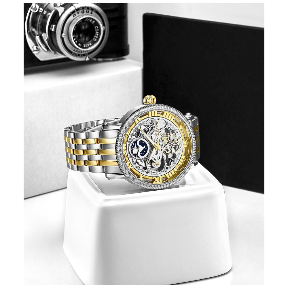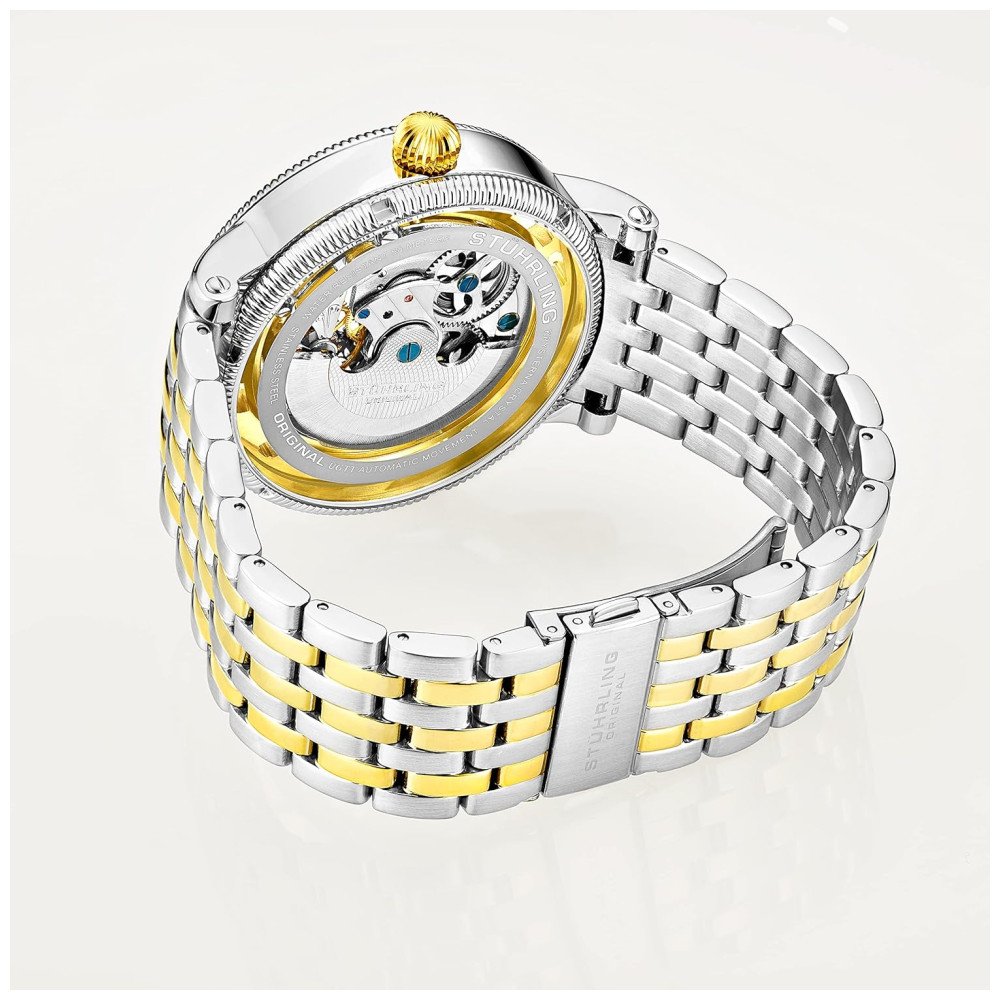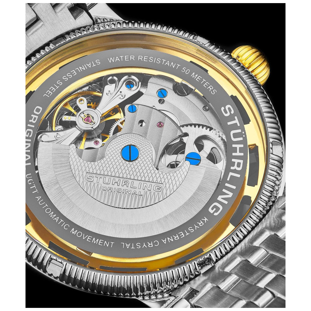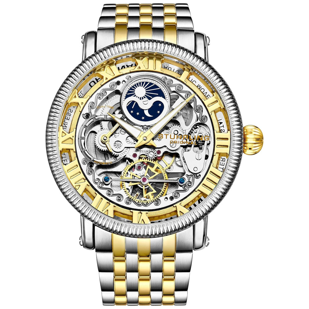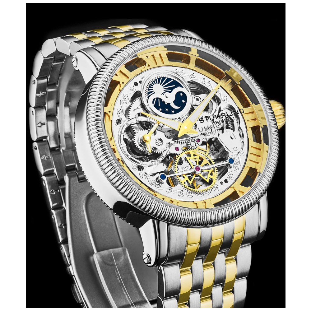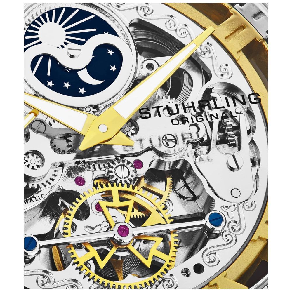 Relogio Stuhrling Homem Masc Automatico Cor Prata Ouro DiaNoite AM PM Aço Inox Lua Sol