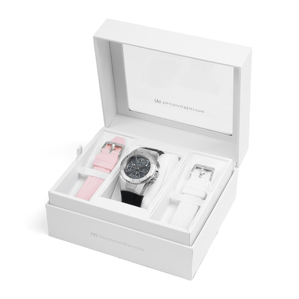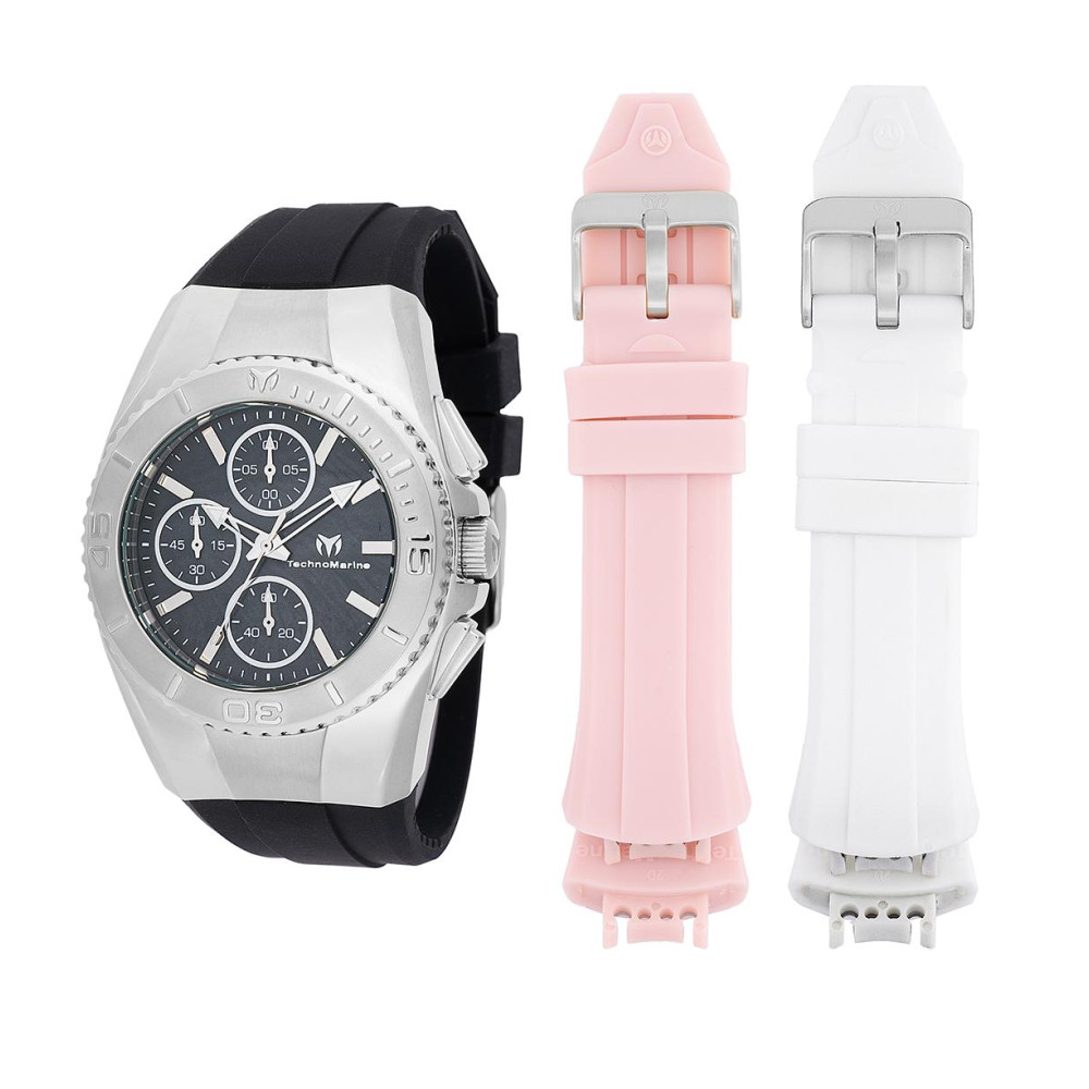 Relógio TechnoMarine Cruise Original Unissex com Mostrador em Madrepérola 38mm Preto Branco Rosa e Pulseira Interchangeável TM124033