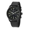 Relógio Velo 482 com cronógrafo mostrador branco e pulseira de couro preta e prata e fivela tang. Stuhrling