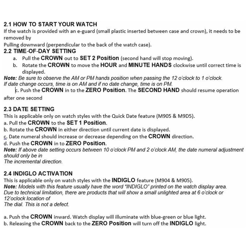Mostrador do relógio Indiglo iluminado. Para aparafusar, empurre a coroa firmemente contra a saliência rosqueada e segure enquanto gira a coroa no sentido horário