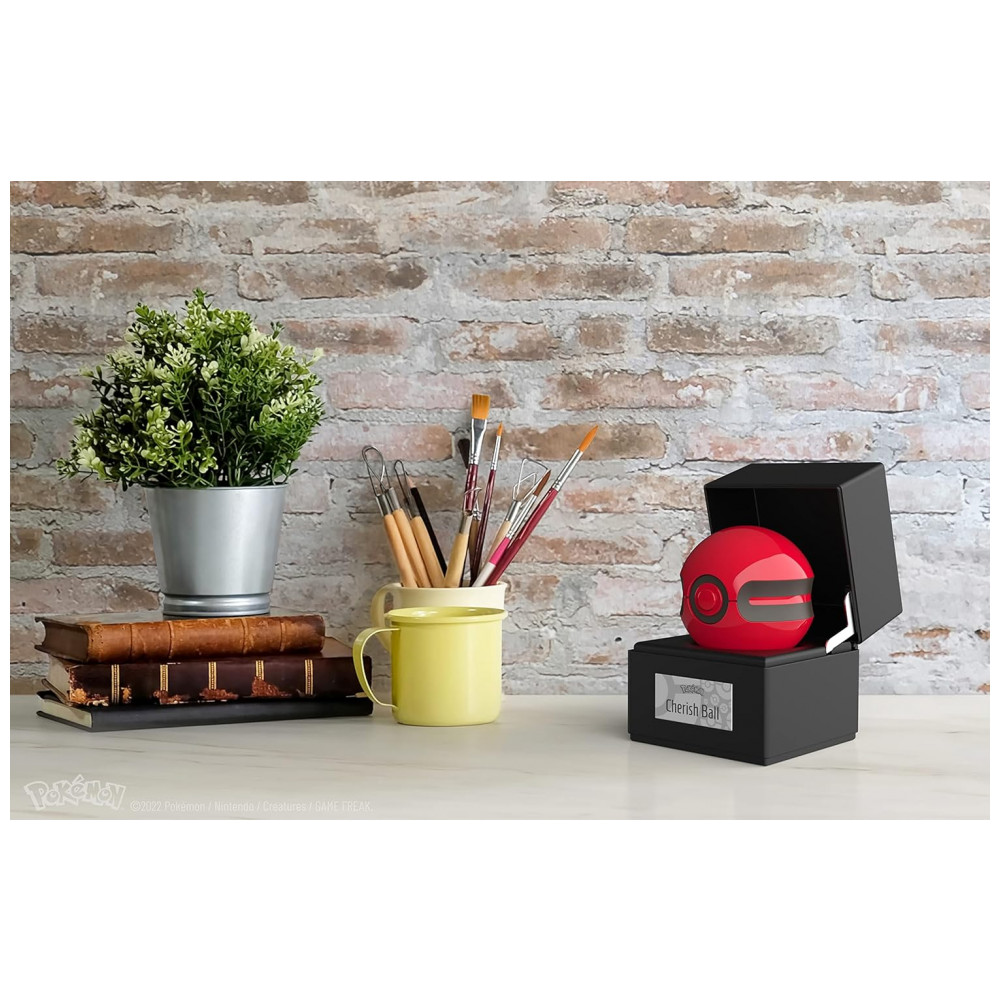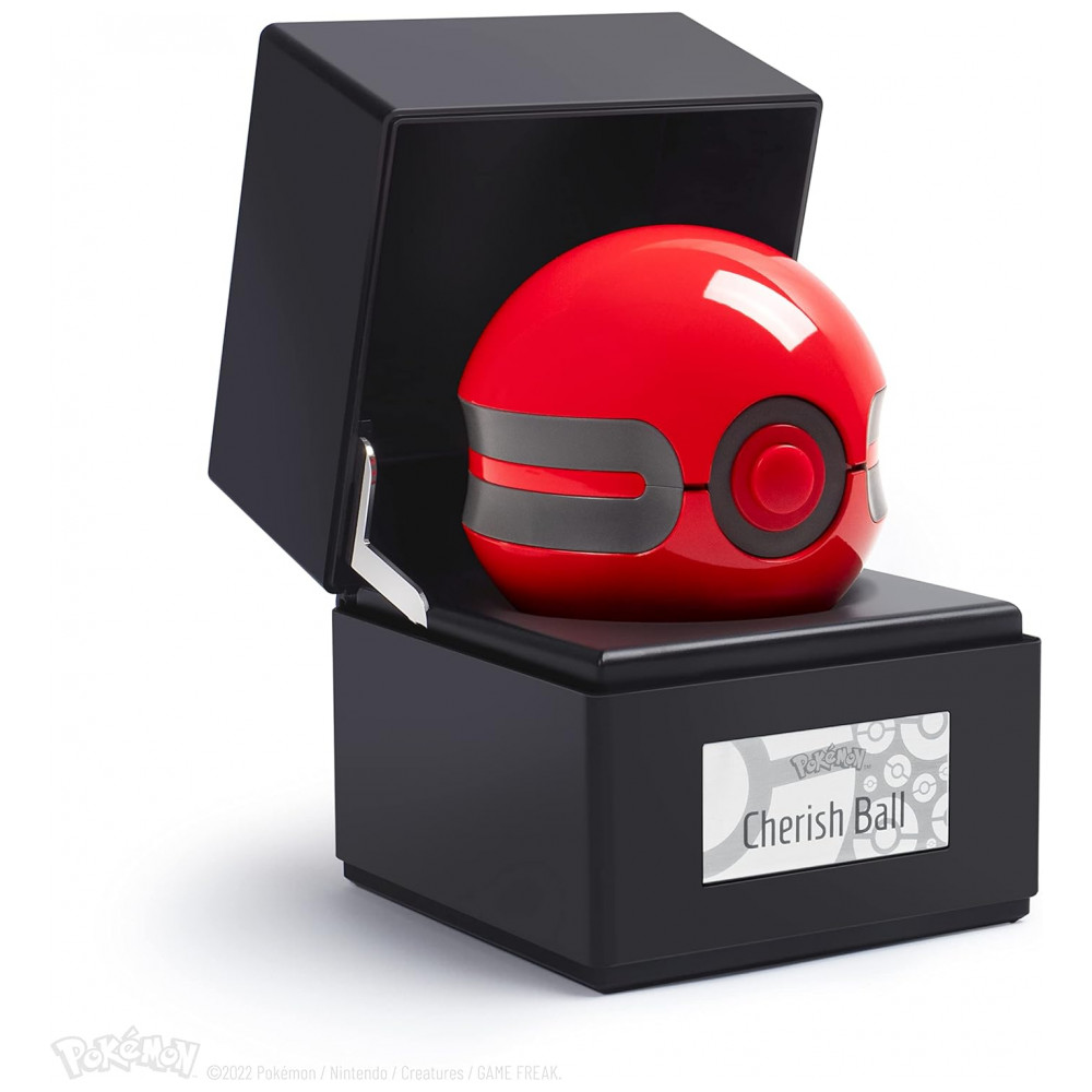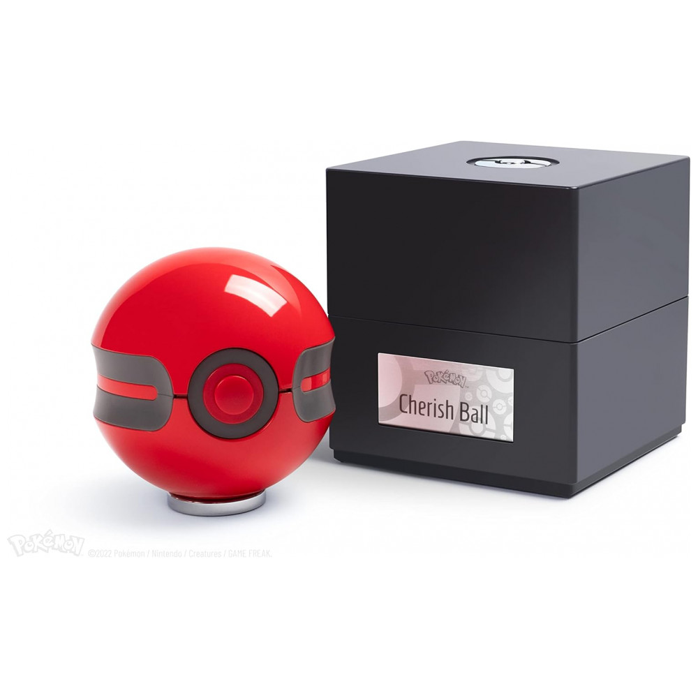 A Poké Bola Cherish Ball da The Wand Company é uma réplica eletrônica de exibição em escala real, com casco em metal fundido e acabamento brilhante de alto padrão, voltada para fãs e colecionadores de Pokémon. O botão frontal possui iluminação com sensor de proximidade, acendendo e aumentando o brilho quando a mão se aproxima ou toca a esfera, criando um efeito interativo que remete ao uso da Poké Bola no universo da franquia.