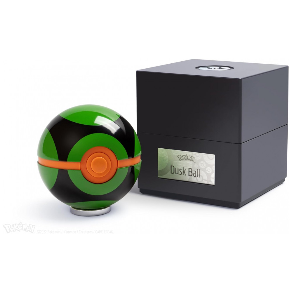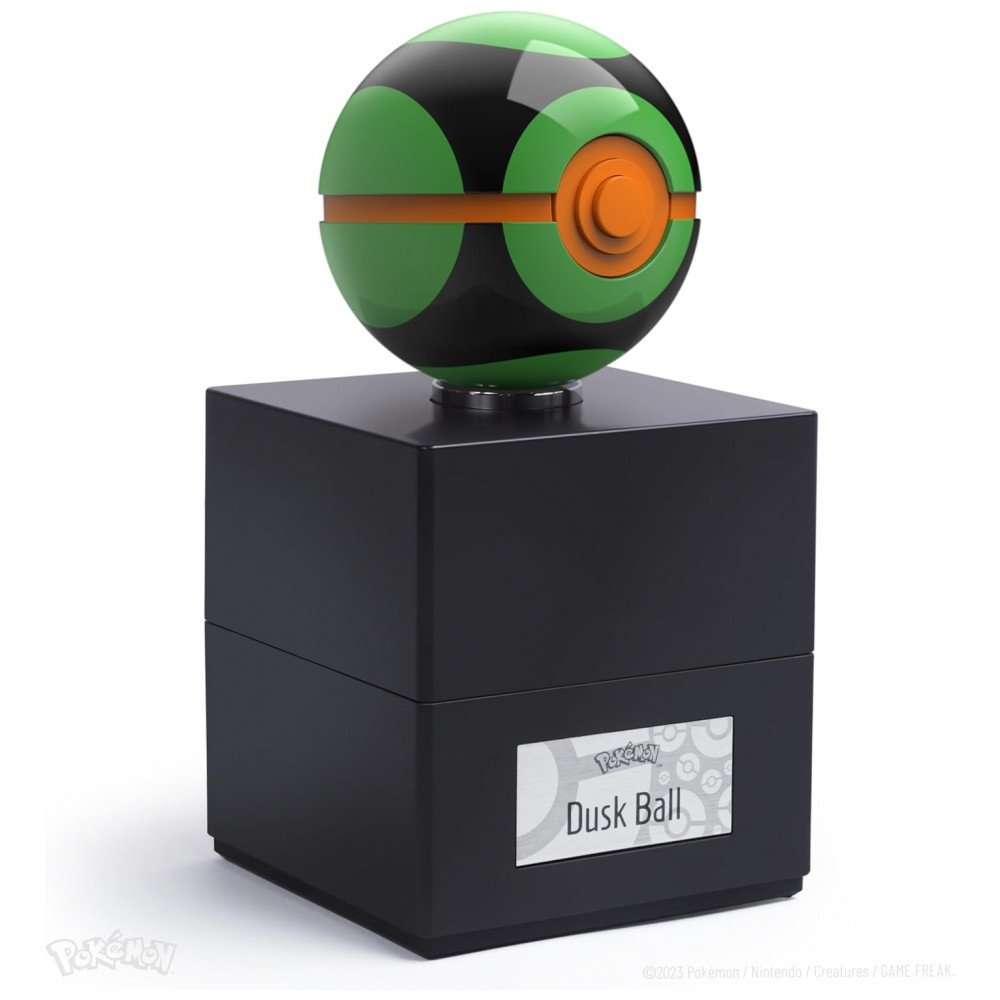 Réplica Poké Bola Dusk Ball original e licenciada The Wand Company metal eletrônica com sensor de proximidade luz multicolor base expositora numerada