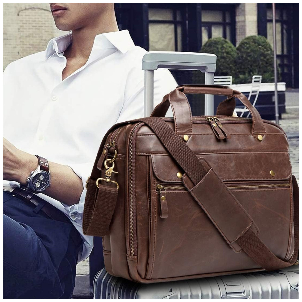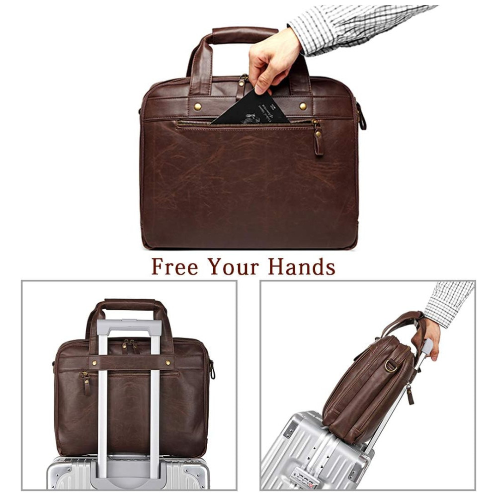 Dimensão e material 16,5 13,2 5 polegadas de peso, 41 x 33 x A pasta masculina é feita de couro de alta qualidade para ser elegante, profissional e de aparência profissional com grande capacidade. O cinto na parte de trás da bolsa mensageiro de negócios dos homens pode caber facilmente no carrinho de bagagem, trazendo conforto para viagens de negócios e viagens.