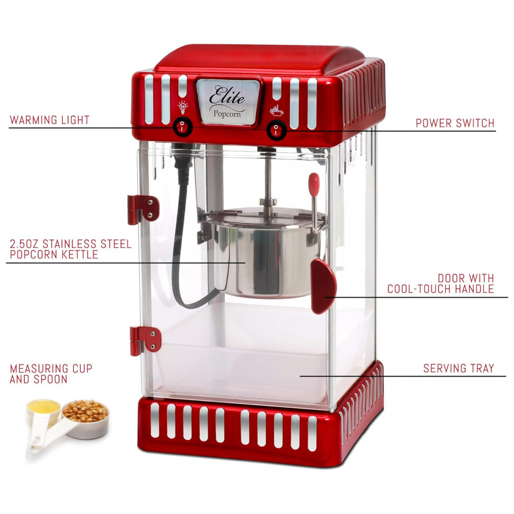 Retrô Pipoqueira Elétrica de Bancada em Aço Inoxidável 300W 110v ELITE GOURMET EPM 250 Vermelho