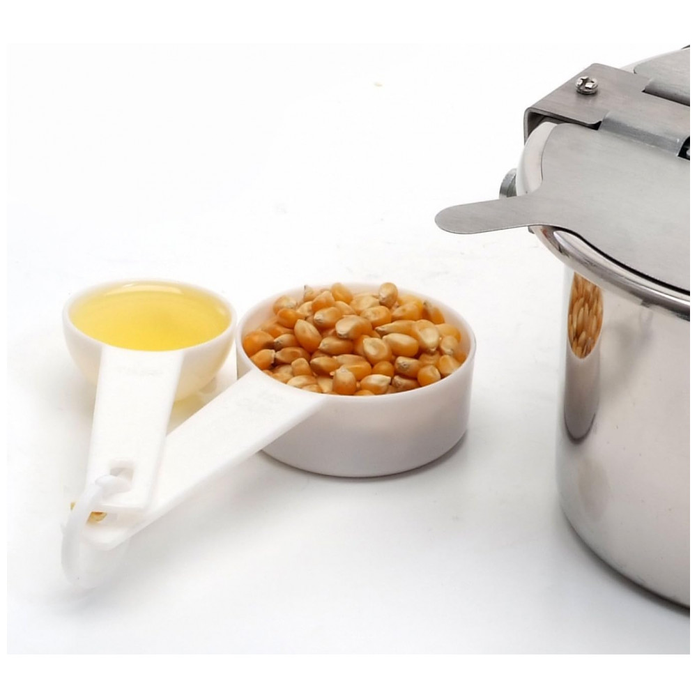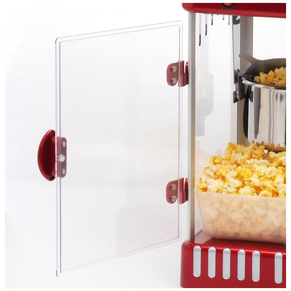 70g. chaleira de aço inoxidável com sistema de agitação embutido e luz de aquecimento para manter a pipoca quente.