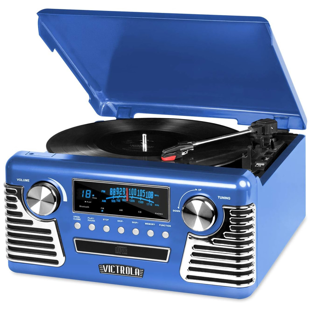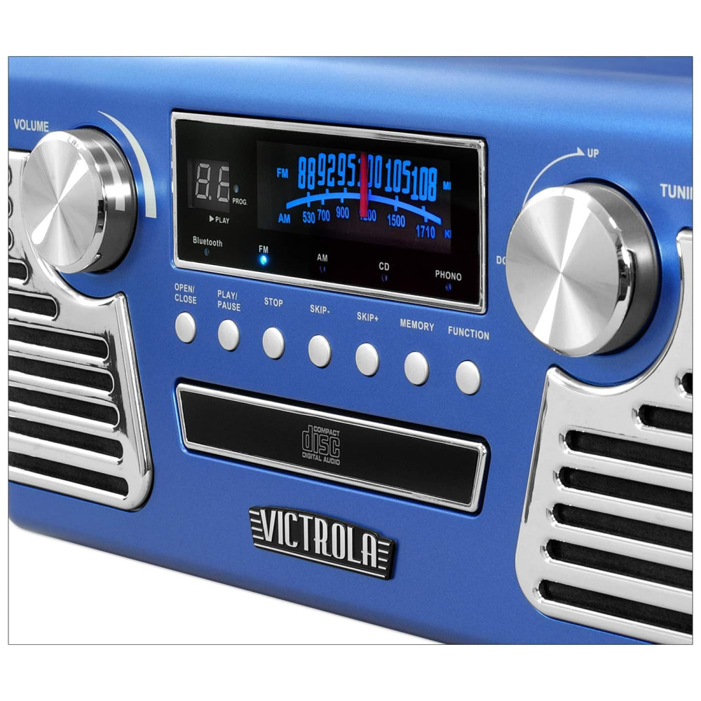 Retro Toca Discos 3 Velocidades e Gravador etooth VICTROLA V50 200 Blu Azul