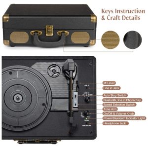 Um botão de parada automática que para de girar uma vez que o disco está tocando no final do registro. Interruptor de modo rápido Bluetooth , Aux in , Phono para seu uso simples. Ótimo para usar quando você precisa de relaxamento, festa e reunião, etc