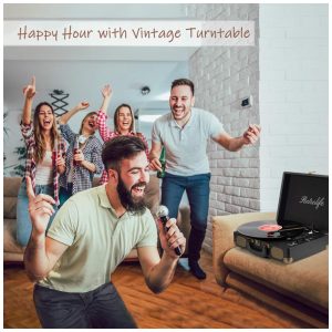 Streaming de áudio digital de música por meio de alto falantes Bluetooth integrados à plataforma giratória. Conecte alto falantes externos por meio de saída RCA ou linha Aux in para dispositivos não Bluetooth, como MP3. Você pode usar seus fones de ouvido para ouvir com privacidade. Aproveite o dia com música.