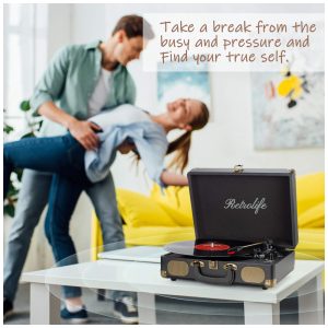 Retrolife Vitrola Toca Discos 3 Velocidades sem fio c USB e Entrada AUX 45 RPM Preto