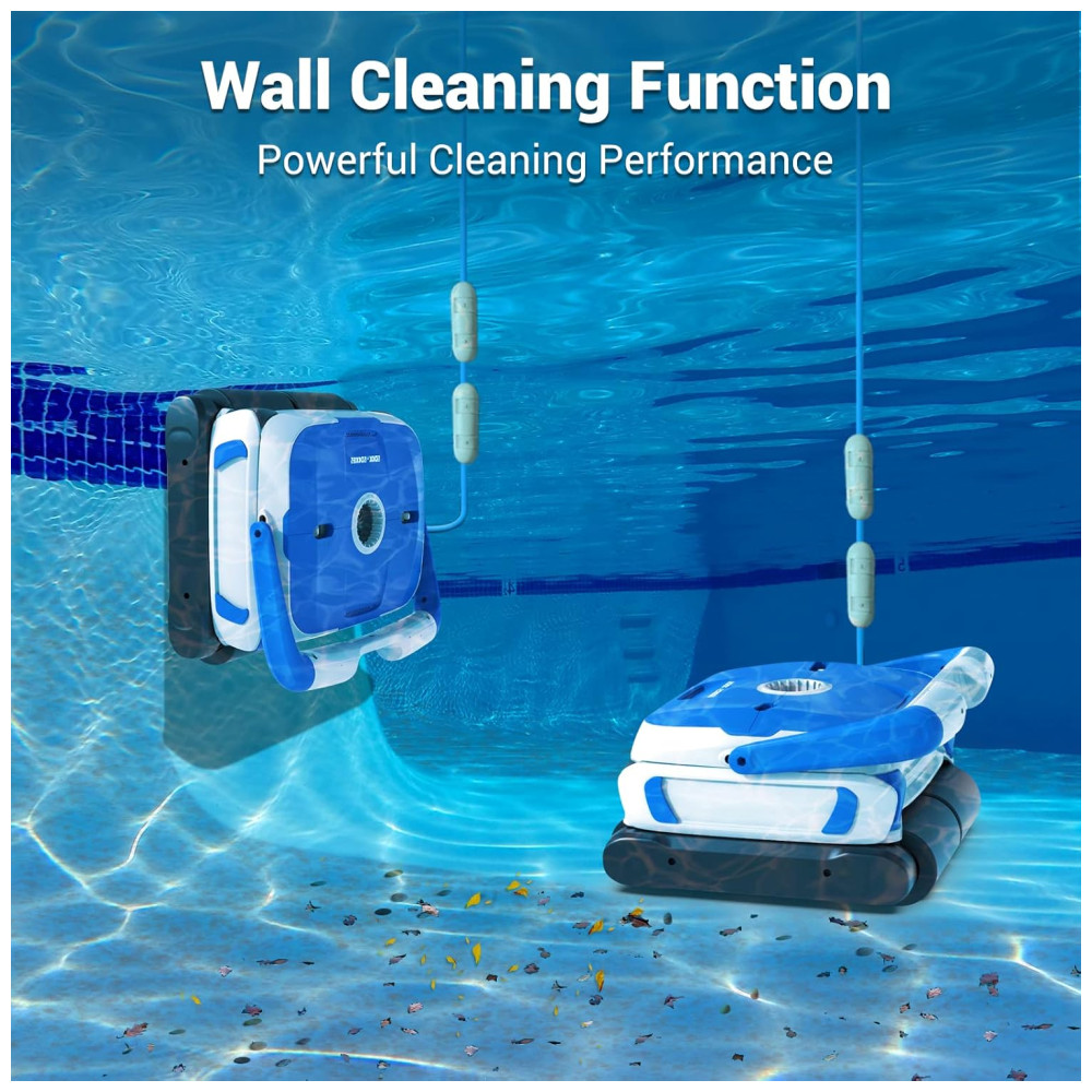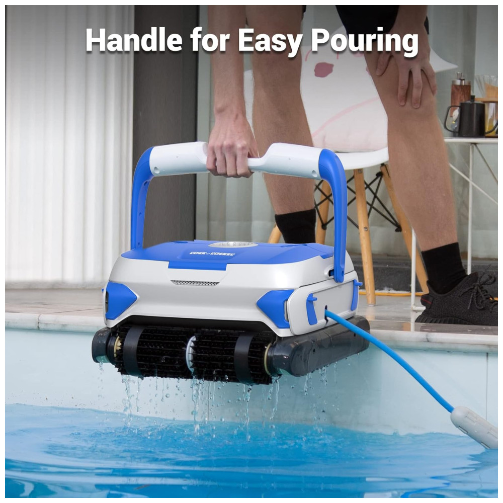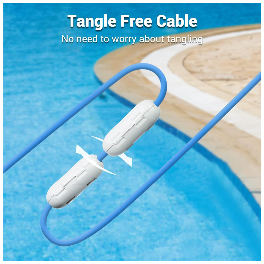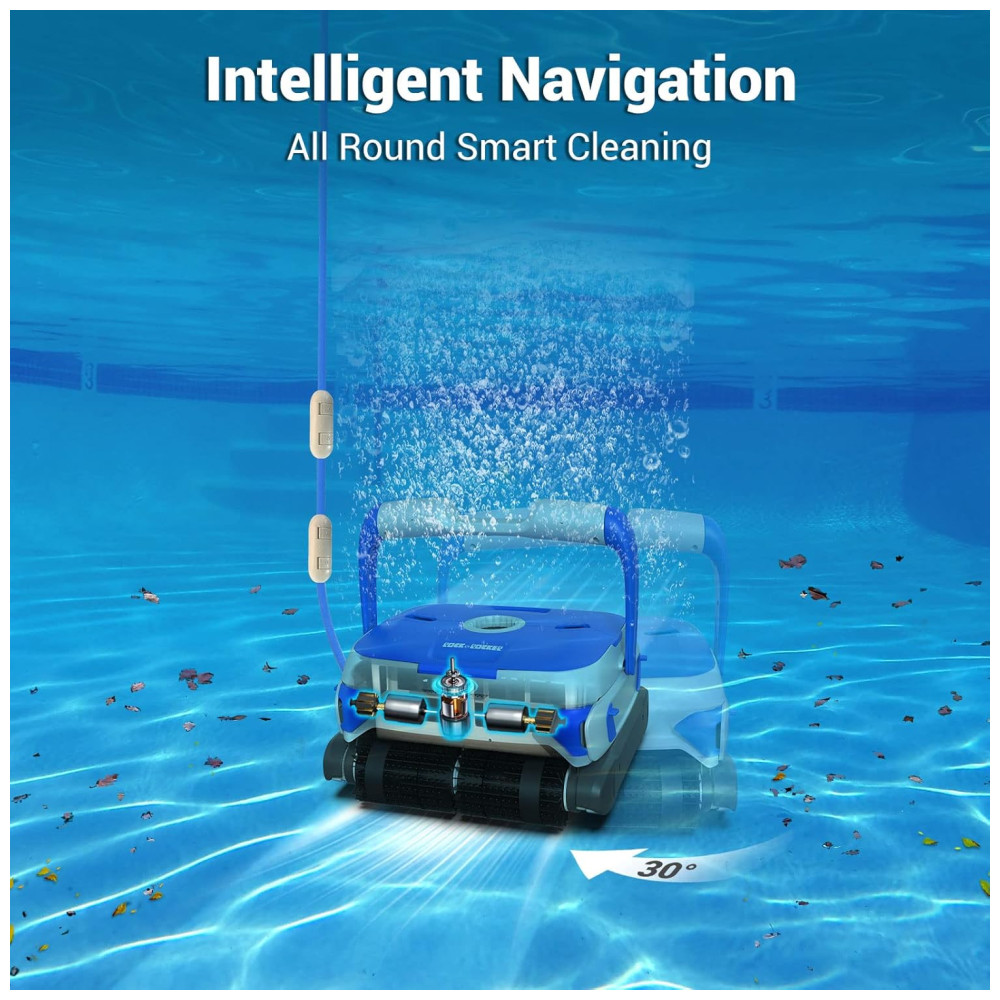 Além disso, seu cabo giratório flutuante de 15,2 metros sem emaranhados permite que a limpeza seja realizada em uma faixa mais ampla, podendo limpar até 110m2. Com tecnologia de navegação inteligente, o limpador pode limpar automaticamente as paredes e o chão da piscina por meio de programas avançados de controle de computador. É possível programar a limpeza usando 3 configurações 1H2H3H para liberar suas mãos e não precisar esfregar a piscina com as mãos.
