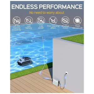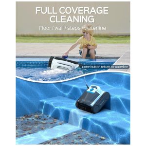 Projetado para piscinas internas de grandes dimensões, possui um motor avançado sem escova e oferece potência de até 150 W, além de uma escova de lavagem ativa para desempenho de sucção incomparável e filtragem fina. Com o recurso onetouch de retorno à linha d água, o robô retorna às proximidades da linha d água com um simples toque no aplicativo, eliminando a necessidade de operações manuais tediosas.