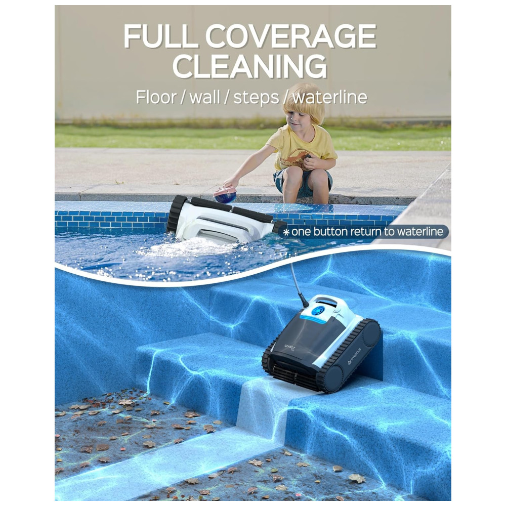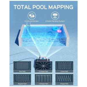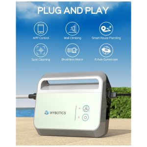 O WYBOT M100 é um robô de limpeza de piscinas de alta tecnologia que oferece uma cobertura completa e eficiente de até 95% da piscina. Com giroscópio de alta precisão e sensores infravermelhos, ele mapeia inteligentemente o formato e tamanho da piscina para garantir uma limpeza meticulosa do chão, paredes e linha de água.