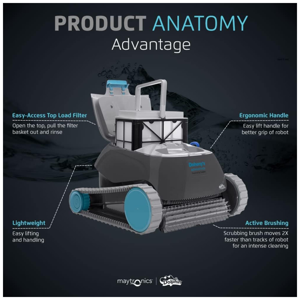 E o melhor de tudo o Dolphin Advantage é durável e confiável, com mais de 40 anos de experiência em limpeza sem esforço. Aproveite sua piscina sem complicações