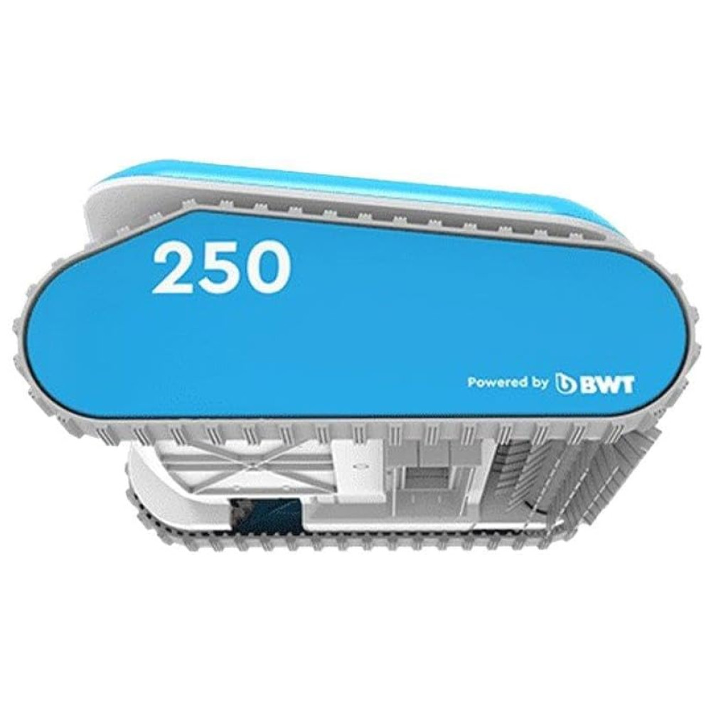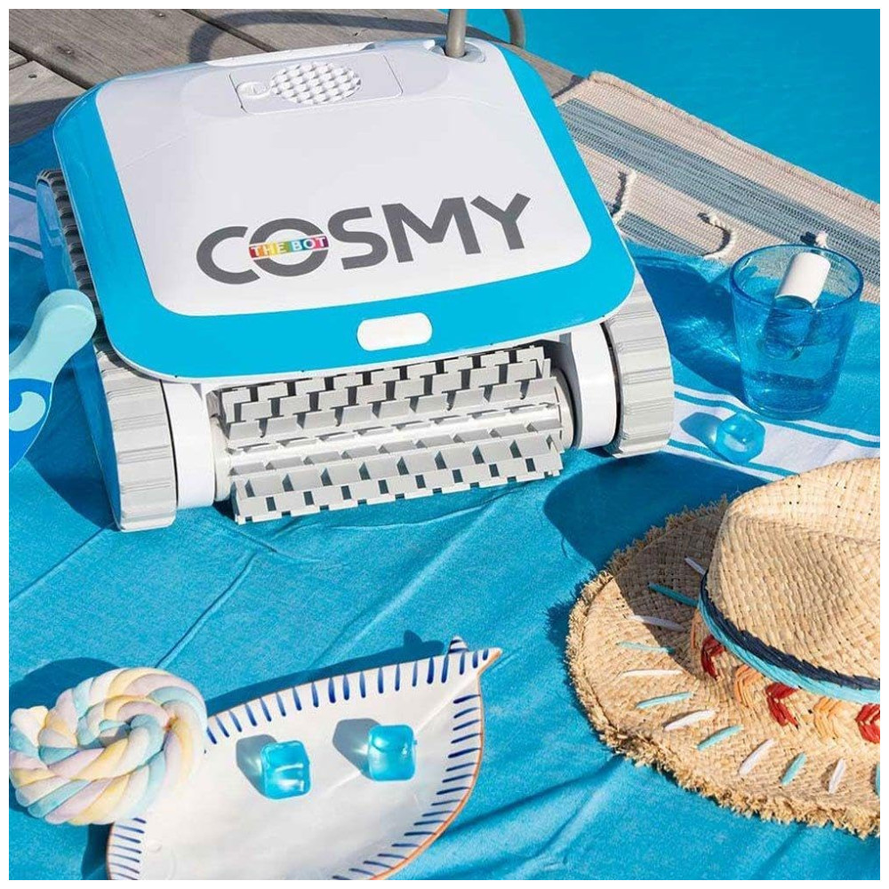 O filtro pode ser facilmente removido e limpo com o toque de um botão. Ele é adequado para todos os tipos de pisos de piscina e acabamentos impermeabilizantes e tem metade do peso da maioria dos limpadores robóticos convencionais, tornando mais fácil sua remoção da piscina. Com um ciclo de limpeza de cabo flutuante cinza Premium de 17,93 metros, o Cosmy the Bot 250 apresenta um modo de deslocamento rápido e lógico e sucção poderosa, permitindo ciclos de limpeza curtos e consumo reduzido de energia.