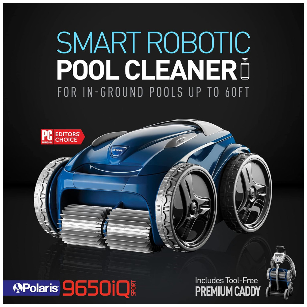 Robô Aspirador de Piscina com Cabo Sucção Forte Recipiente do Filtro de Fácil Acesso e Controle por APP 110V Polaris 9650iQ Azul