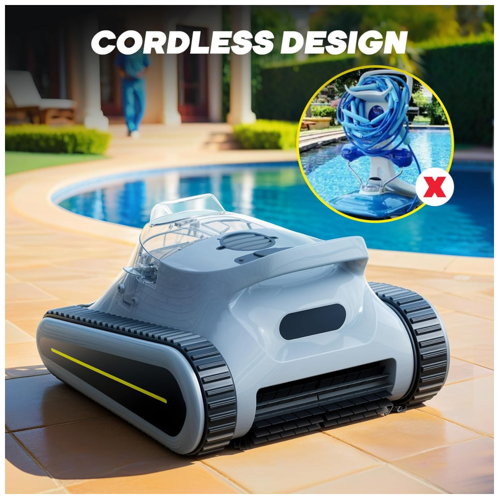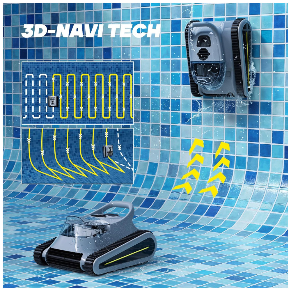 Robô de Limpeza Sem Esforço: O Robô de Limpeza de Piscina Seauto utiliza tecnologia avançada 3D-Navi para limpar de forma eficiente qualquer tipo de piscina por mais de 1,5 horas. Com apenas um toque, o aspirador automático cobre todos os pisos e paredes da piscina.