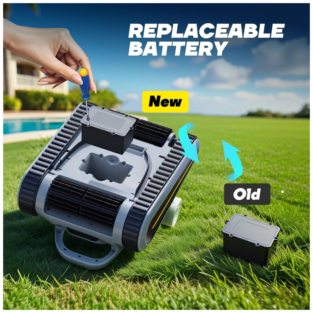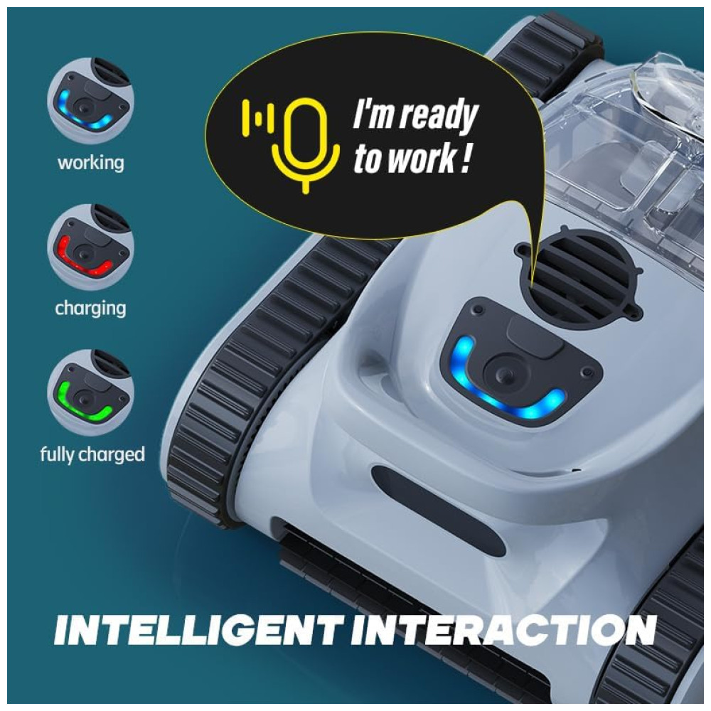 Robô de Limpeza Confiável: O robô emite alertas sonoros e LEDs quando é ligado ou quando a bateria está baixa. O sensor de sonar interno permite que o Seauto Crab saiba quando subir pelas paredes e onde evitar obstáculos, sendo ideal para piscinas acima ou enterradas.