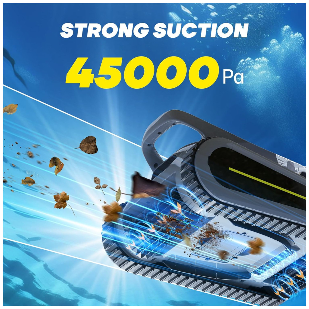 Sucção Potente e Escovas: Com potência de sucção de até 45.000 Pa, este robô de limpeza é equipado com escovas frontais e traseiras e uma cesta de filtragem grande e eficiente, que captura todos os tipos de detritos, areia, folhas pequenas, sujeira e outros resíduos difíceis.