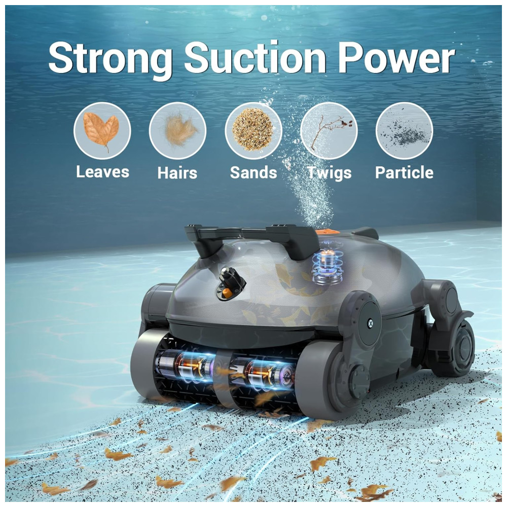 Desempenho Excepcional de Limpeza: Equipado com algoritmos avançados e poderosa capacidade de sucção, o robô limpa de forma profunda e eficiente todos os tipos de superfícies de piscinas e tipos de detritos. Seus caminhos de limpeza otimizados e sistema de navegação responsivo garantem uma remoção eficaz de sujeiras e impurezas, deixando sua piscina impecável com mínimo esforço.