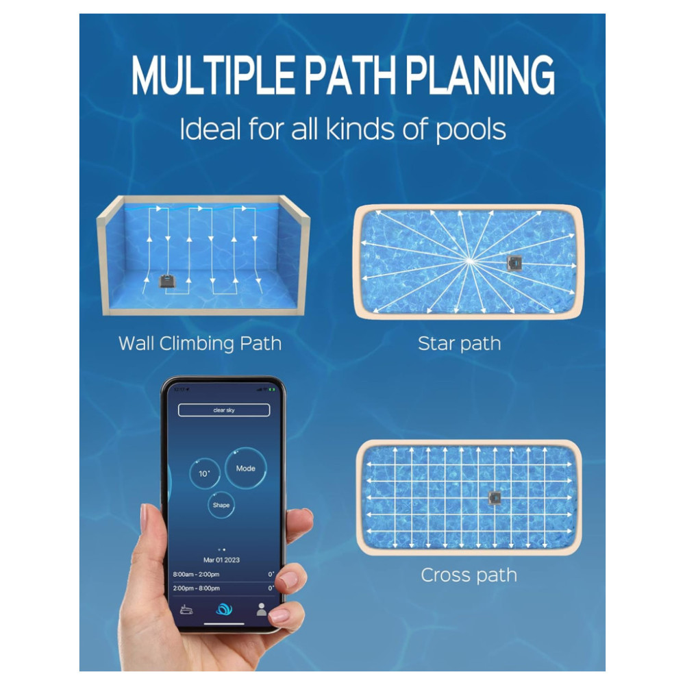Com o aplicativo WYBOTWinnyGo, é possível controlar todos os elementos do Osprey 700 Max, incluindo uma função inteligente de planejamento de caminho do giroscópio e configuração do caminho modesto de limpeza, caminho cruzado, caminho regular de escalada na parede. É melhor conectar o robô e o aplicativo na costa e definir o modo de limpeza antes de colocá lo na piscina.