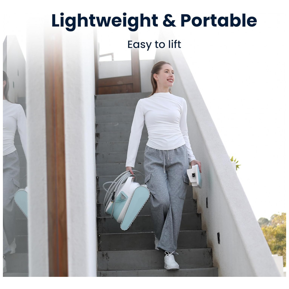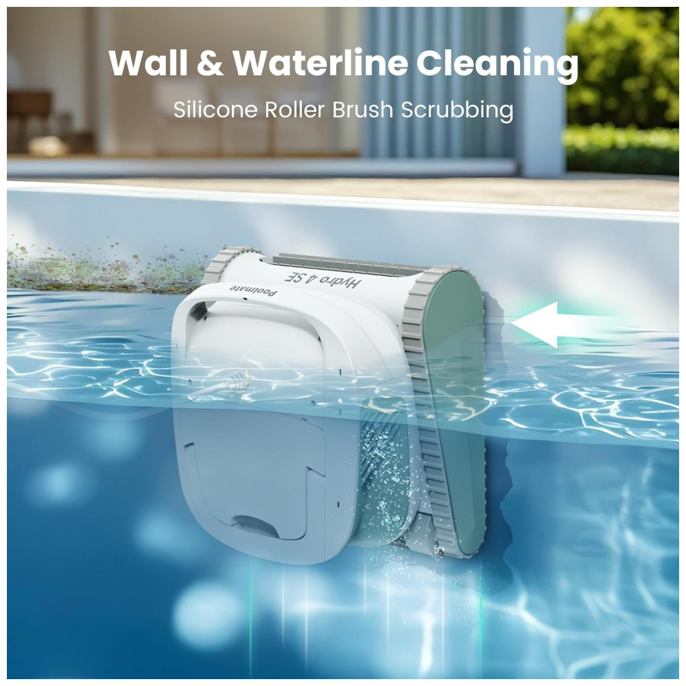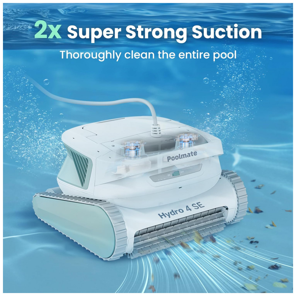 O robô aspirador Poolmate Hydro 4 SE é um modelo com cabo elétrico, indicado para piscinas enterradas de até 12 metros de comprimento, com profundidade máxima de 3 metros. Equipado com motor de 150W e bomba centrífuga dupla, oferece sucção de até 19.200 litros por hora, garantindo remoção eficaz de sujeiras difíceis em pisos e paredes, incluindo linha d’água. Possui quatro modos de limpeza—automático, piso, paredes e ultra-clean—with algoritmos inteligentes de percurso em formato ‘S’ para cobertura total da piscina. O filtro é do tipo cesta com capacidade de 4,1 litros e poros de 180 micra, capturando folhas, cabelo e partículas finas. Conta com escovas rolantes de silicone que removem com eficiência manchas. O cabo de alimentação tem 12 metros, oferecendo segurança com flutuabilidade para limpeza prolongada. O controle é simples pelo botão touch no equipamento ou via aplicativo Poolmate Bot, com possibilidade de selecionar o modo ultra-clean apenas pelo app. Possui proteção IP68 para uso submerso e é leve, pesando aproximadamente 10 kg.O robô aspirador Poolmate Hydro 4 SE é um modelo com cabo elétrico, indicado para piscinas enterradas de até 12 metros de comprimento, com profundidade máxima de 3 metros. Equipado com motor de 150W e bomba centrífuga dupla, oferece sucção de até 19.200 litros por hora, garantindo remoção eficaz de sujeiras difíceis em pisos e paredes, incluindo linha d’água. Possui quatro modos de limpeza—automático, piso, paredes e ultra-clean—with algoritmos inteligentes de percurso em formato ‘S’ para cobertura total da piscina. O filtro é do tipo cesta com capacidade de 4,1 litros e poros de 180 micra, capturando folhas, cabelo e partículas finas. Conta com escovas rolantes de silicone que removem com eficiência manchas. O cabo de alimentação tem 12 metros, oferecendo segurança com flutuabilidade para limpeza prolongada. O controle é simples pelo botão touch no equipamento ou via aplicativo Poolmate Bot, com possibilidade de selecionar o modo ultra-clean apenas pelo app. Possui proteção IP68 para uso submerso e é leve, pesando aproximadamente 10 kg.