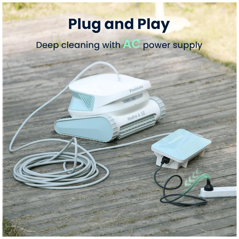 Robô Aspirador para Piscinas DEENO Poolmate Hydro 4 SE Limpeza com Cabo 150W Filtração Ultrafina 180μm Escalada de Paredes Modelo 2025 Voltagem 110V AC