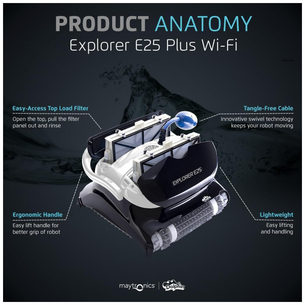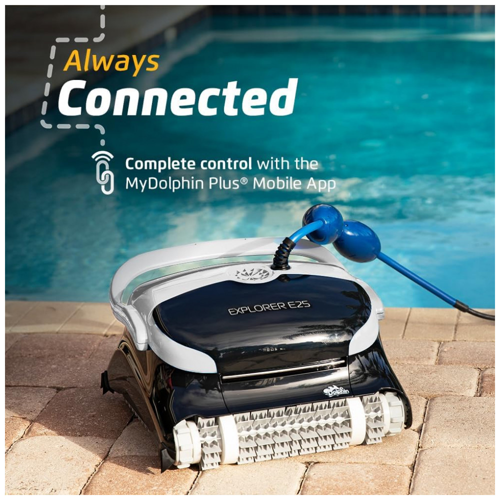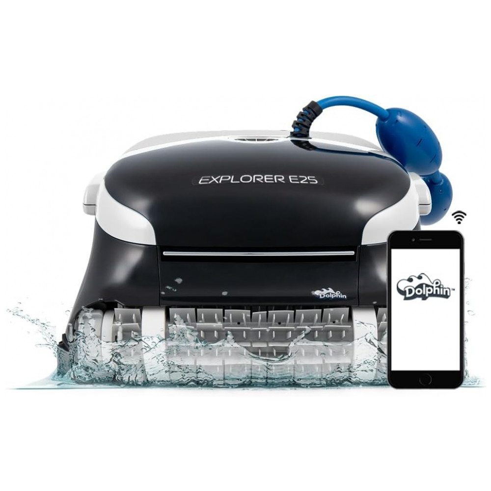 Robô Aspirador para Piscinas Dolphin Explorer E25 Preto Conectividade Wi-Fi Escova para Limpeza de Linha d’Água Modelo 2025 Cabo 15m