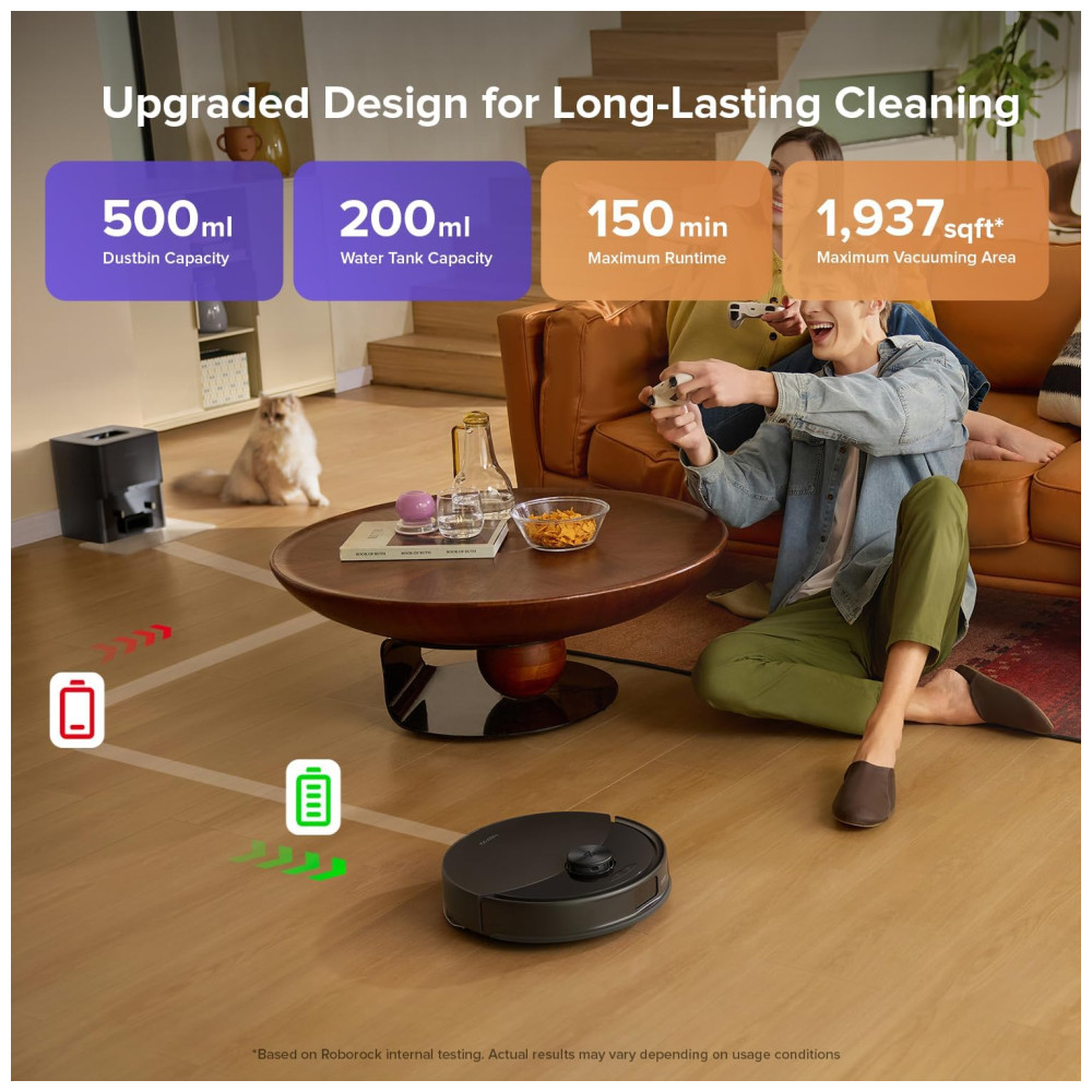 Desfrute de 7 semanas de limpeza sem esforço com a estação de auto-esvaziamento. Com 2,7L de capacidade, proporciona até 7 semanas de limpeza sem manutenção, perfeito para lares movimentados e donos de animais de estimação. Com sucção HyperForce de 10.000 Pa, levanta facilmente pelos de animais, migalhas e sujeira de tapetes, pisos de madeira e vãos. Equipado com sistema anti-emaranhamento dual que minimiza o emaranhamento de pelos, garantindo um desempenho suave e reduzindo a necessidade de manutenção frequente. Com sistema de esfregamento sônico de duas zonas VibraRise 2.0, remove manchas e bagunças, elevando-se até 8mm em tapetes. Detecta e navega em torno de obstáculos com precisão, garantindo uma limpeza fluida mesmo em espaços confusos. Navegação LiDAR de alta precisão para mapeamento 3D detalhado. Controle total pelo aplicativo Roborock, agendamento de limpeza, ajuste de sucção, zonas proibidas e níveis de esfregamento. Transforme sua casa em um ambiente mais limpo e inteligente.