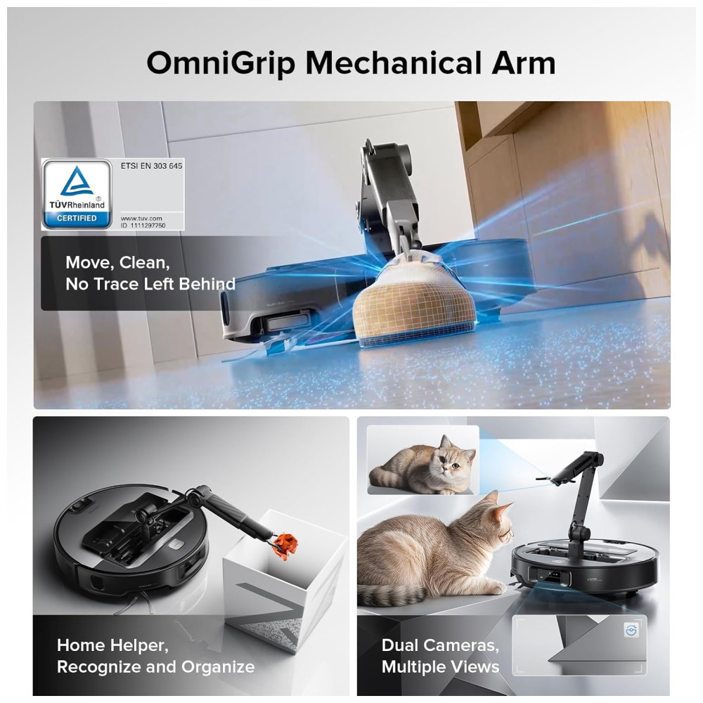 Experimente a revolução da limpeza com o Robô Aspirador e Esfregão roborock Saros Z70. Equipado com um braço mecânico de cinco eixos, o braço OmniGrip move obstáculos, levanta objetos e organiza pequenos itens domésticos. Com câmeras duplas, iluminação LED e sensores de precisão, garante a manipulação precisa de objetos. Este robô possui sucção de 22.000Pa, capaz de limpar efetivamente sujeira de vários tipos de pisos. Adapta-se automaticamente a diferentes superfícies, subindo até 4 cm de altura e ajustando o esfregão em carpetes. Com tecnologia avançada de navegação 3D StarSight, evita obstáculos laterais com precisão. Além disso, oferece personalização por IA, manutenção sem as mãos, design ultraleve, inteligência pet-friendly e controle completo via aplicativo.