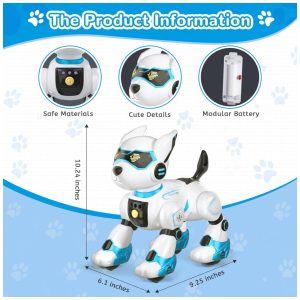 Robô Cachorro Programável Azul e Branco – YoJo‑Tech Controle Remoto Voz Imitador de Sons e Dança para Crianças