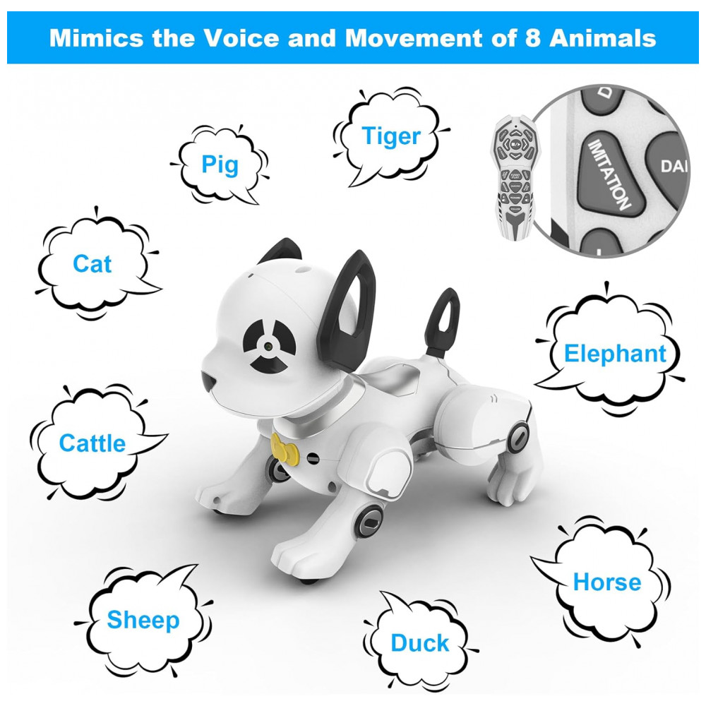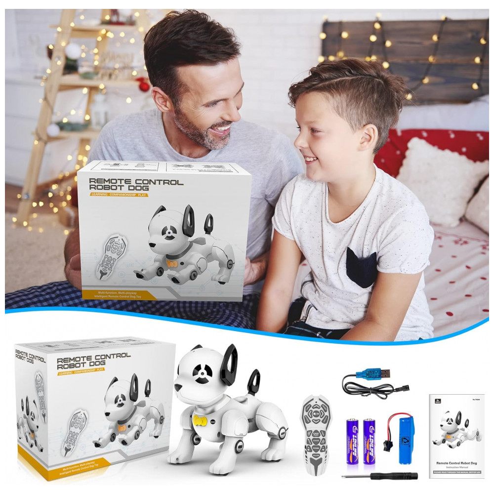 Robô Cachorro Programável Preto e Branco – Controle Remoto Imitador de Sons Dança e “Handstand” para Crianças