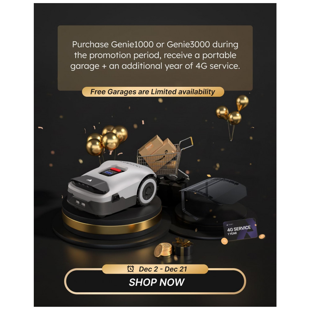 Robô Cortador de Grama com Garagem ANTHBOT Genie Cinza sem Fio Perimetral RTK+Visão 4 Câmeras para 900 m² Mapeamento Automático 20 Zonas Evitação de Obstáculos Controle APP.