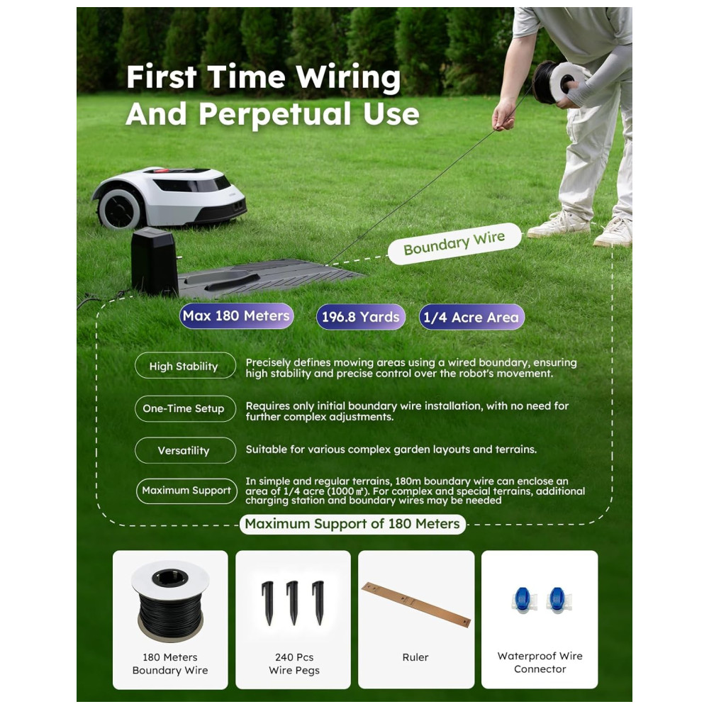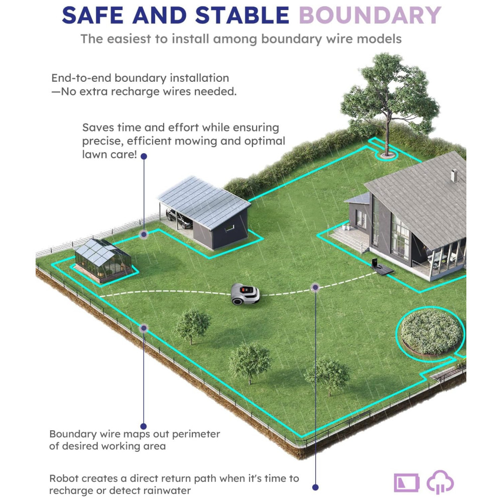 Fácil de instalar e limpar, o ANTHBOT é a escolha ideal para gramados de até 0,25 acre que equivale a aproximadamente 1000 metros quadrados, oferecendo conveniência, eficiência e desempenho excepcionais. Experimente o futuro do cuidado do gramado com o cortador de grama robótico ANTHBOT.