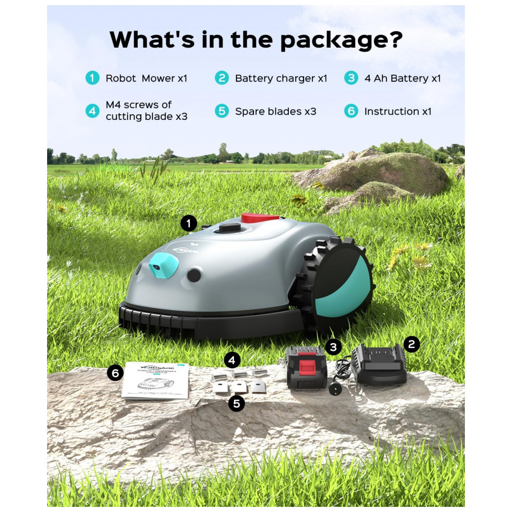 Robô Cortador de Grama YARDCARE V100 Cinza com Navegação Visual e Evitação de Obstáculos Altura Ajustável 2-6 cm para até 150 m² Operação Automática sem Fios Perimetrais Modelo V100-0729.